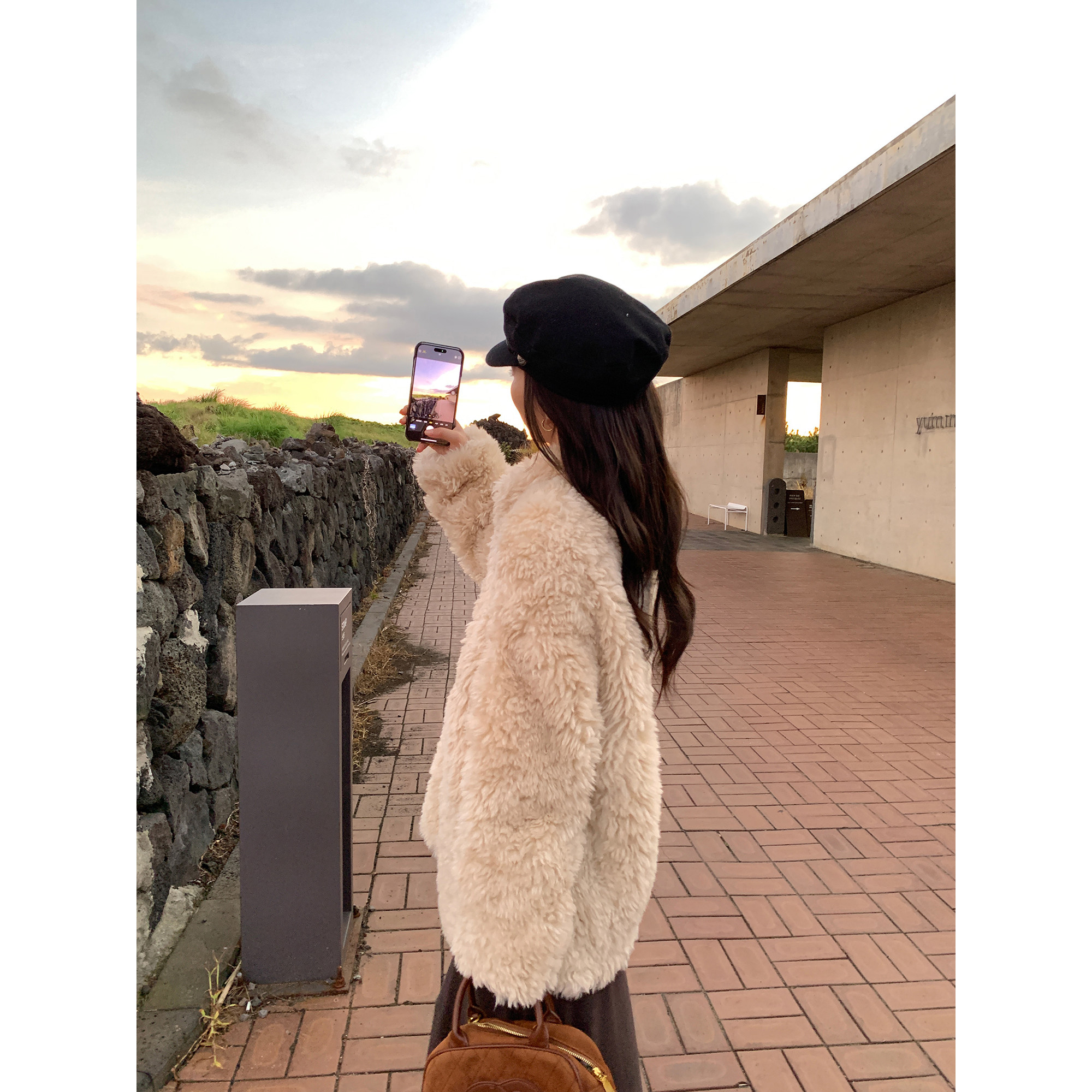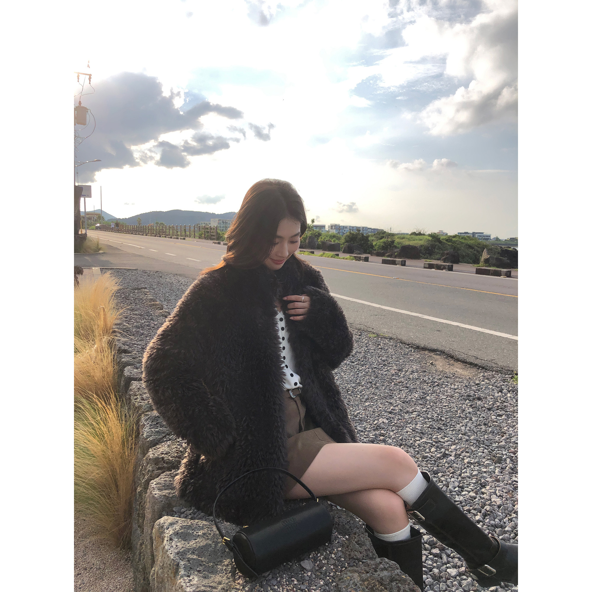 pusumede 富家千金 仿皮草立领毛毛外套女软糯保暖宽松短款上衣