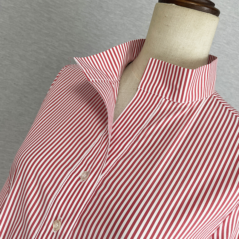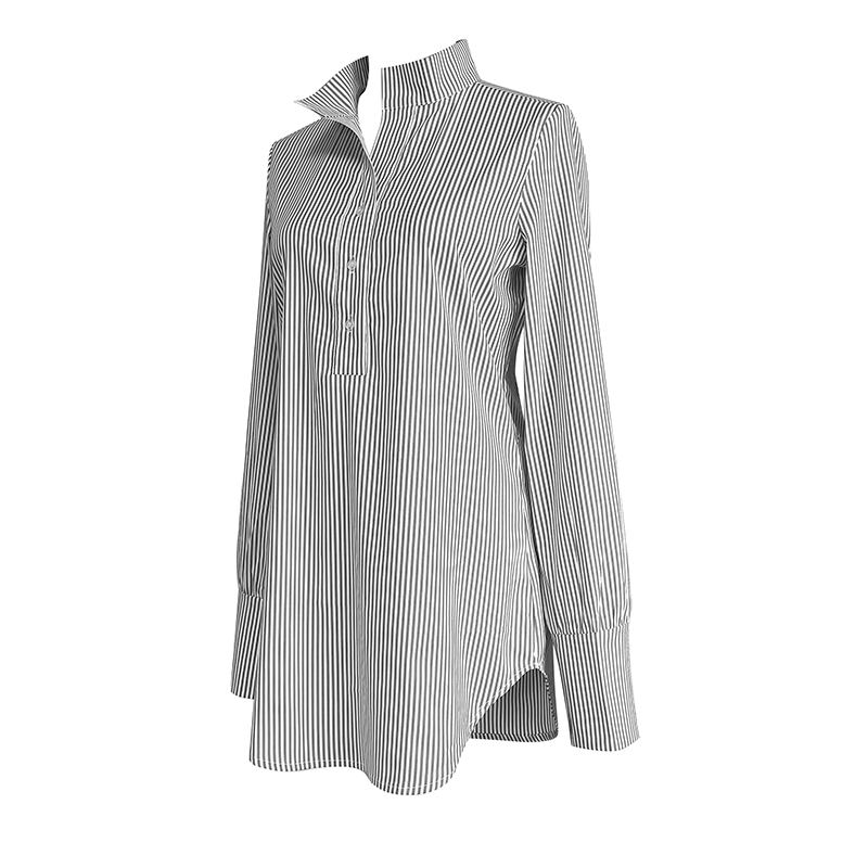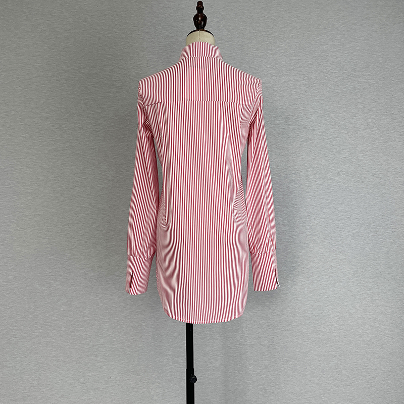 中长款弹力竖条纹立领衬衫女单排扣宽松显瘦透气百搭套头休闲衬衣