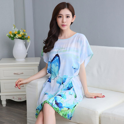 韩版短袖宽松女士可爱长裙家居服