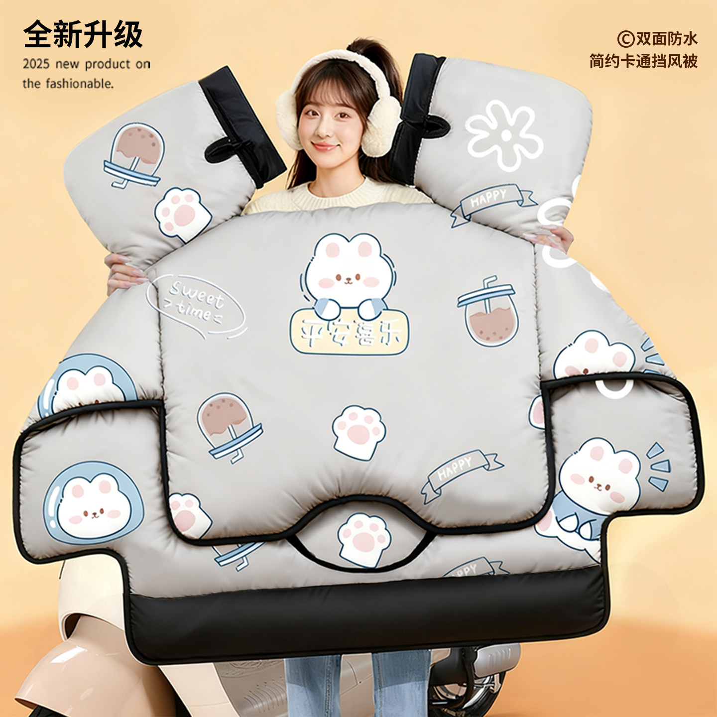 双面防水电动车挡风被冬季加绒