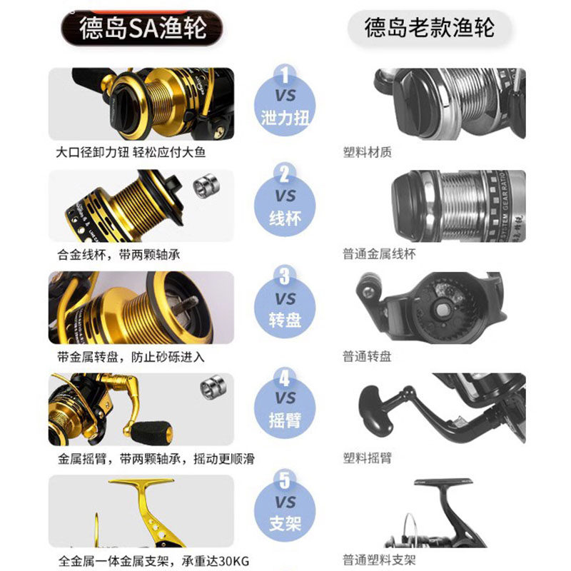 德岛SA全金属渔轮纺车轮鱼轮不锈钢鱼线轮海杆轮海竿路亚轮渔具