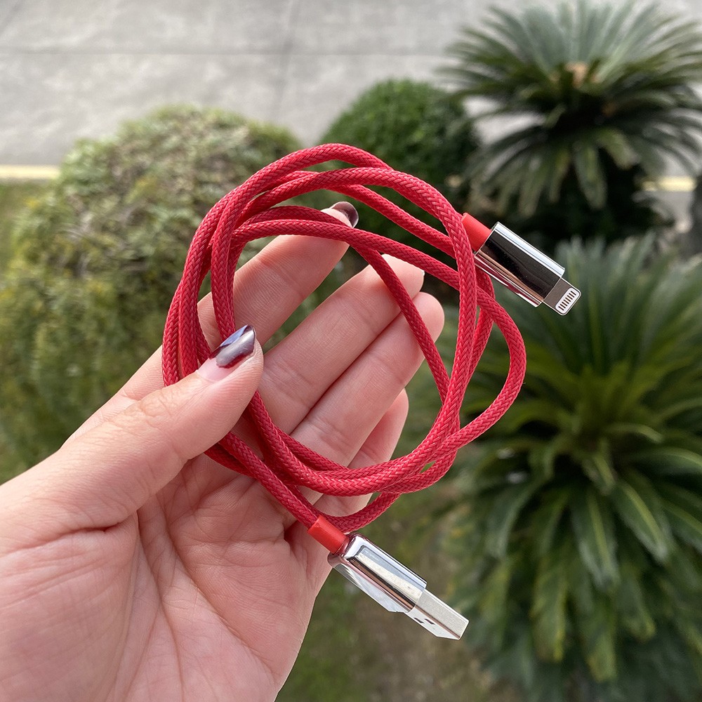 春节用红线!喜庆!MFI认证适用于苹果手机数据线Lightning接口合金头1m编织款USB便携式手机充电线iPhone