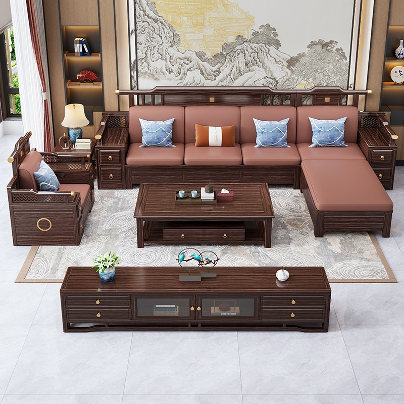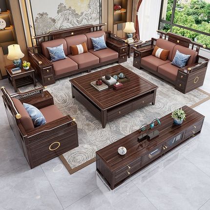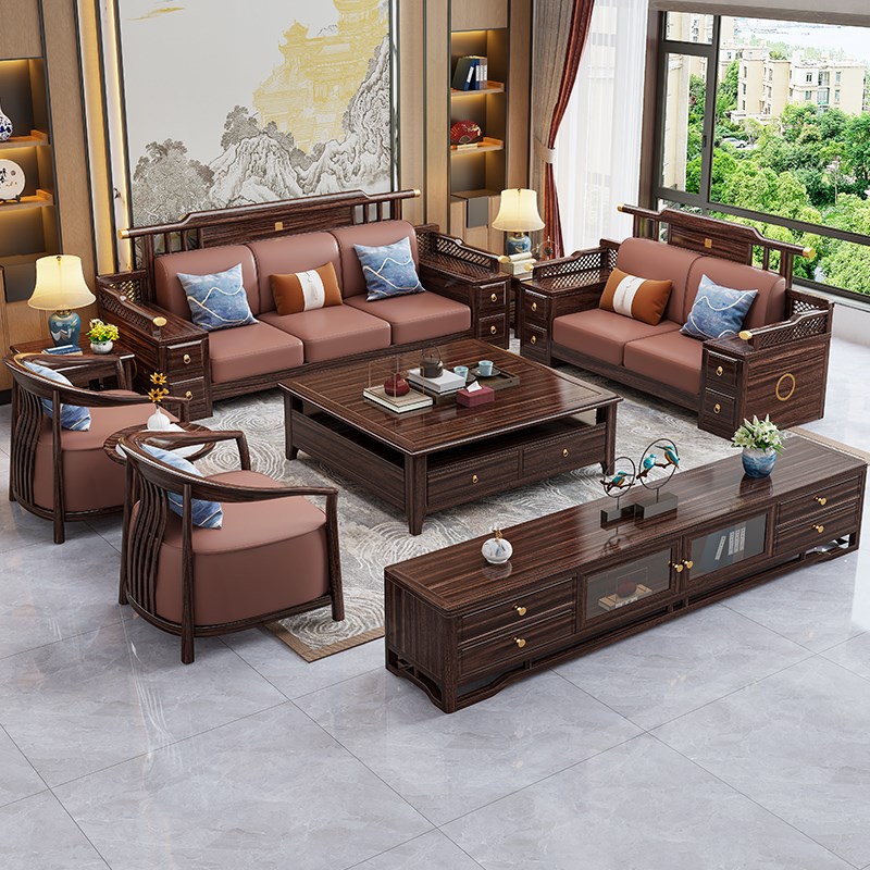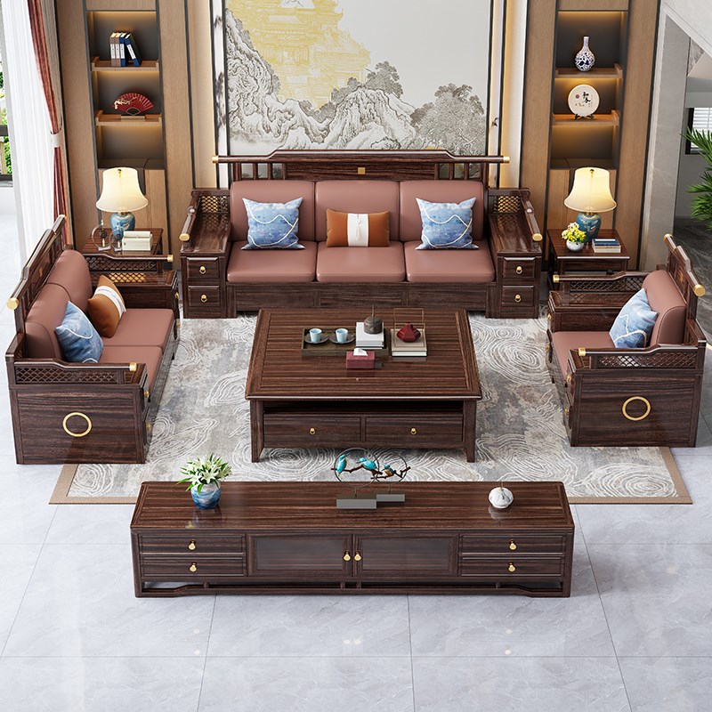 新中式乌金木实木沙发客厅组合现代轻奢大小户型高箱储物客厅沙发