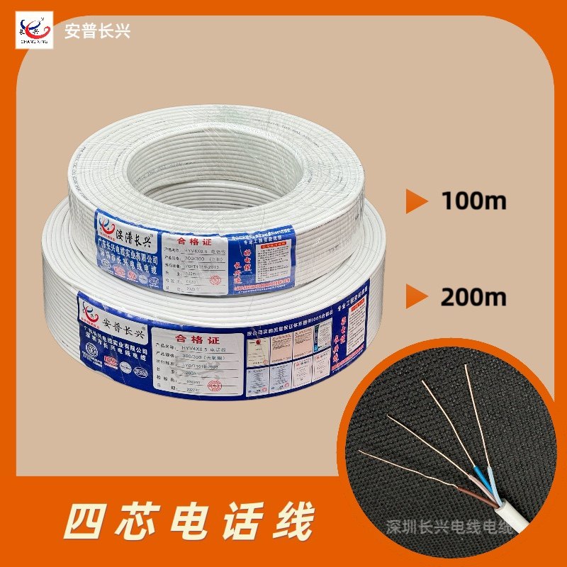 纯铜二芯 四芯电话线2芯4芯 0.5纯铜HYV电话线传真机线100米200米