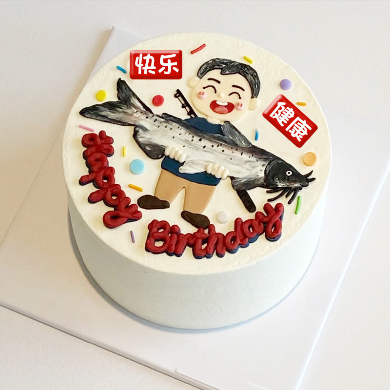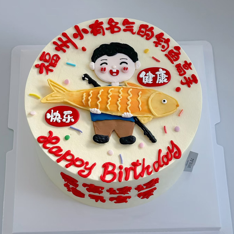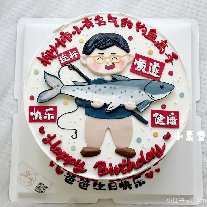 钓鱼高手巧克力转印纸老爸父亲男士生日蛋糕装饰DIY定制蛋糕装饰