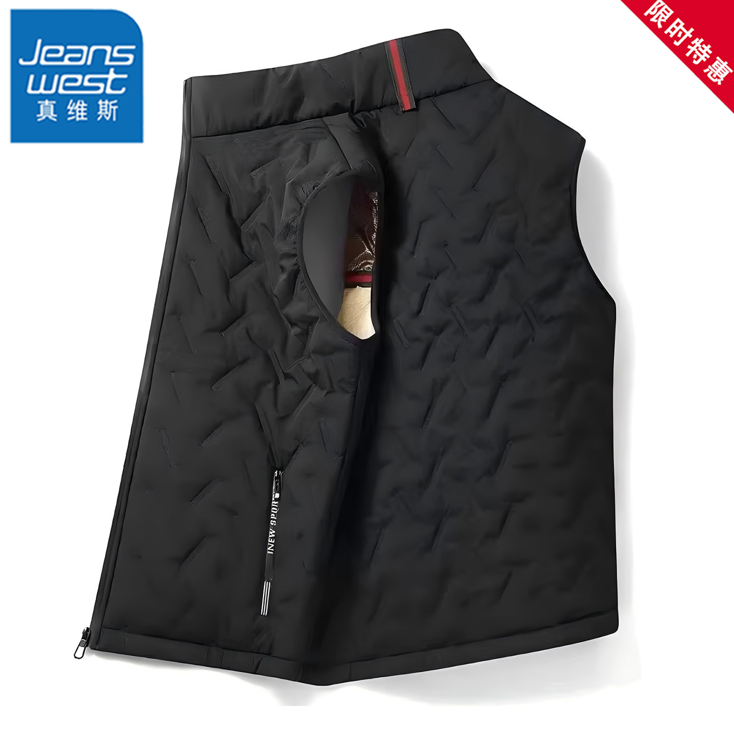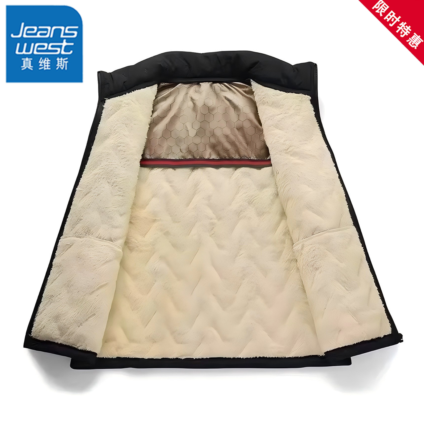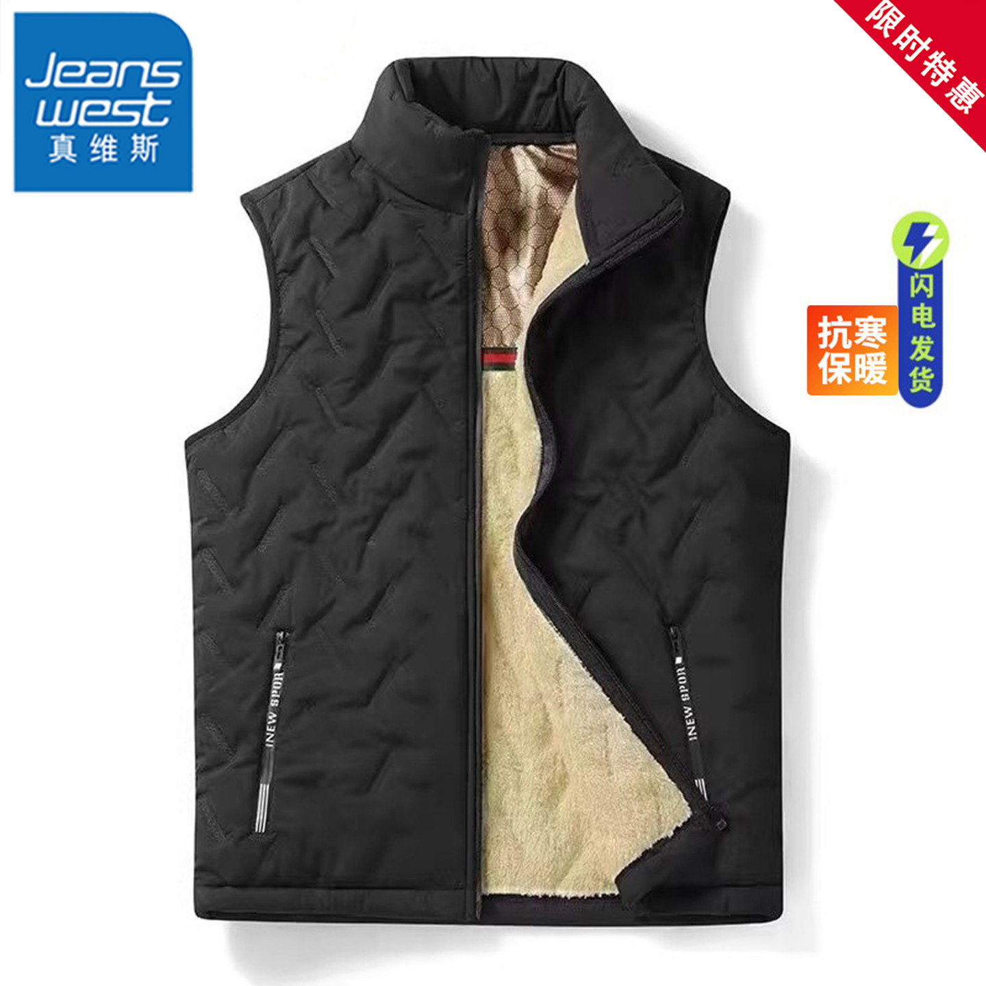 真维斯2025羊羔绒马甲男士秋冬季加绒加厚款中老年爸爸背心外套