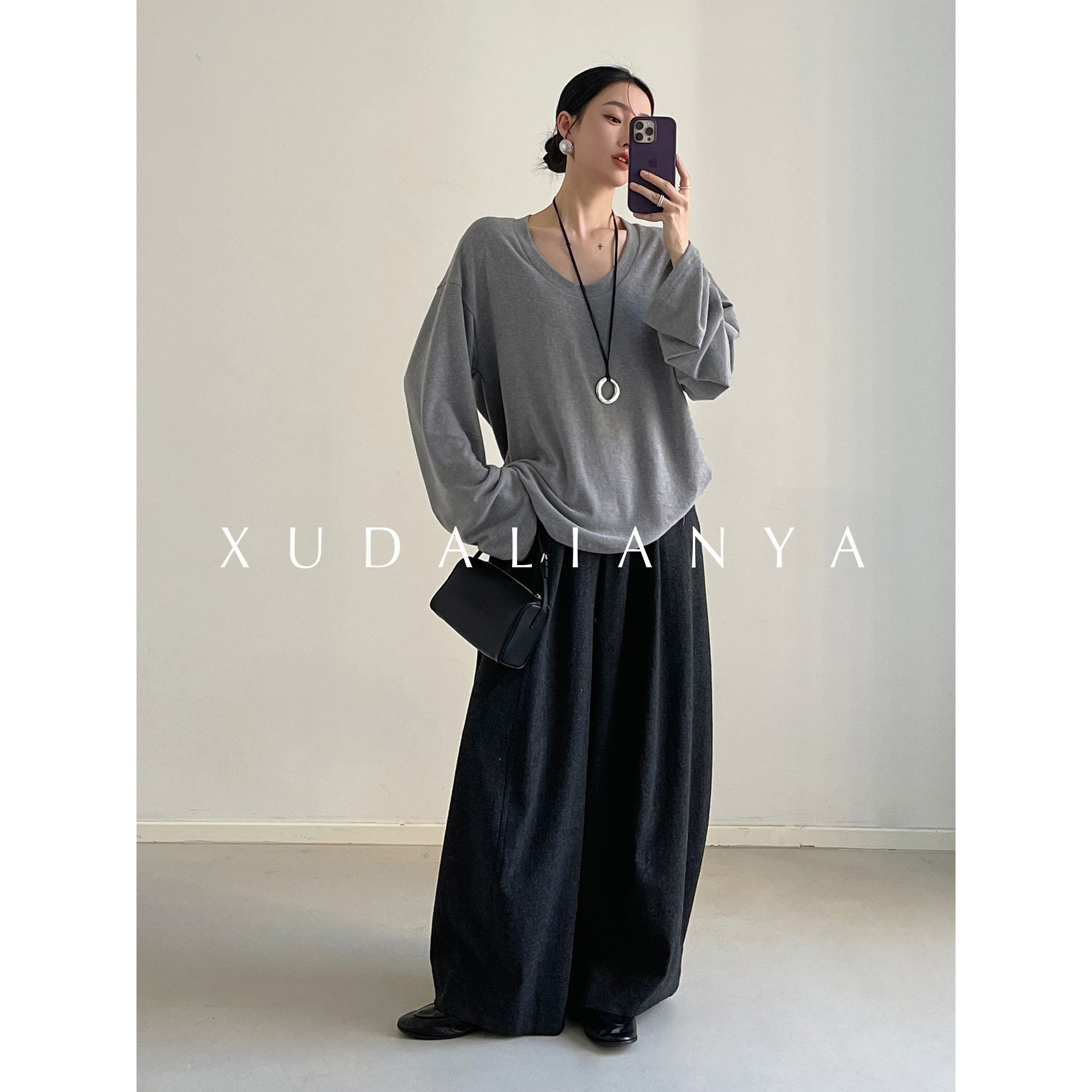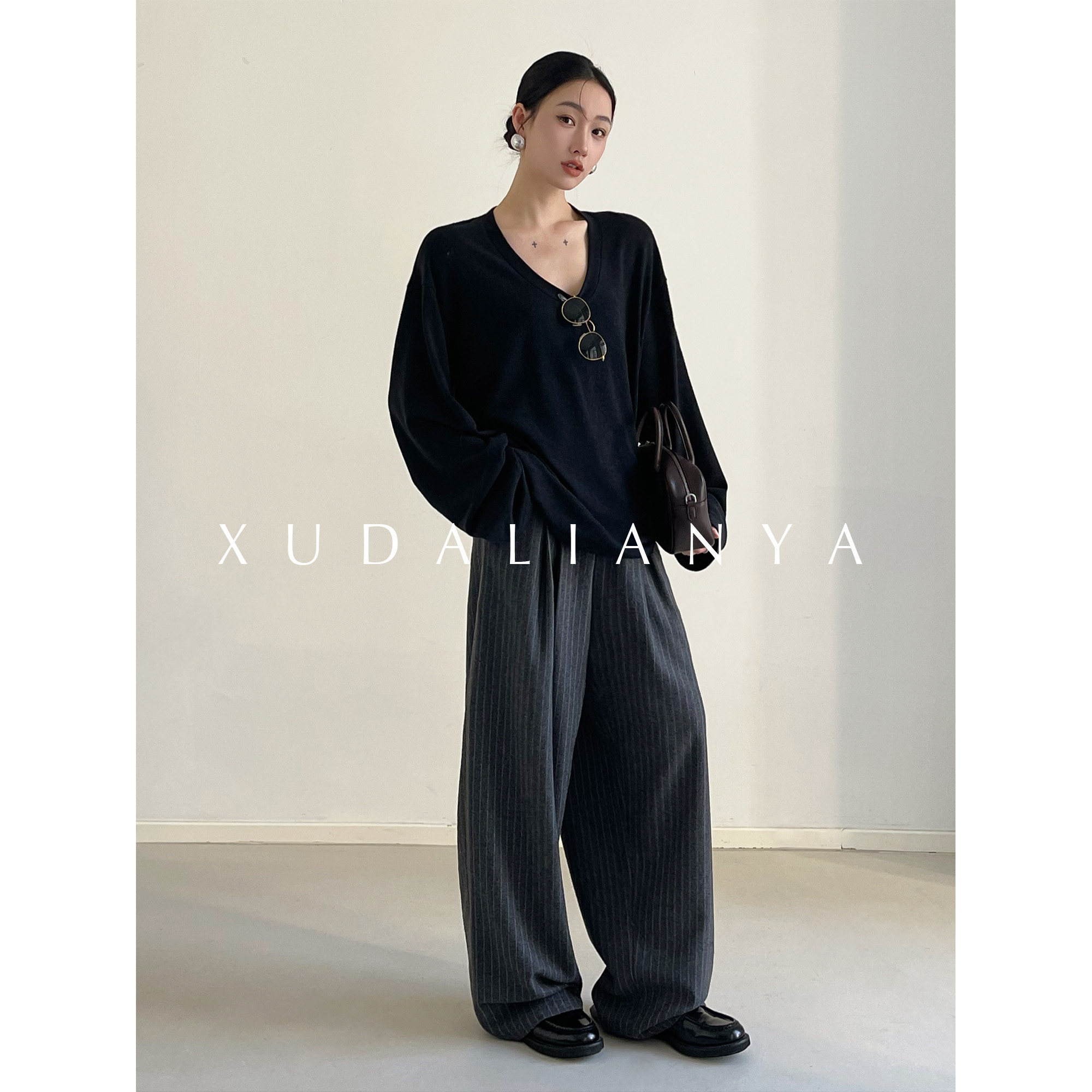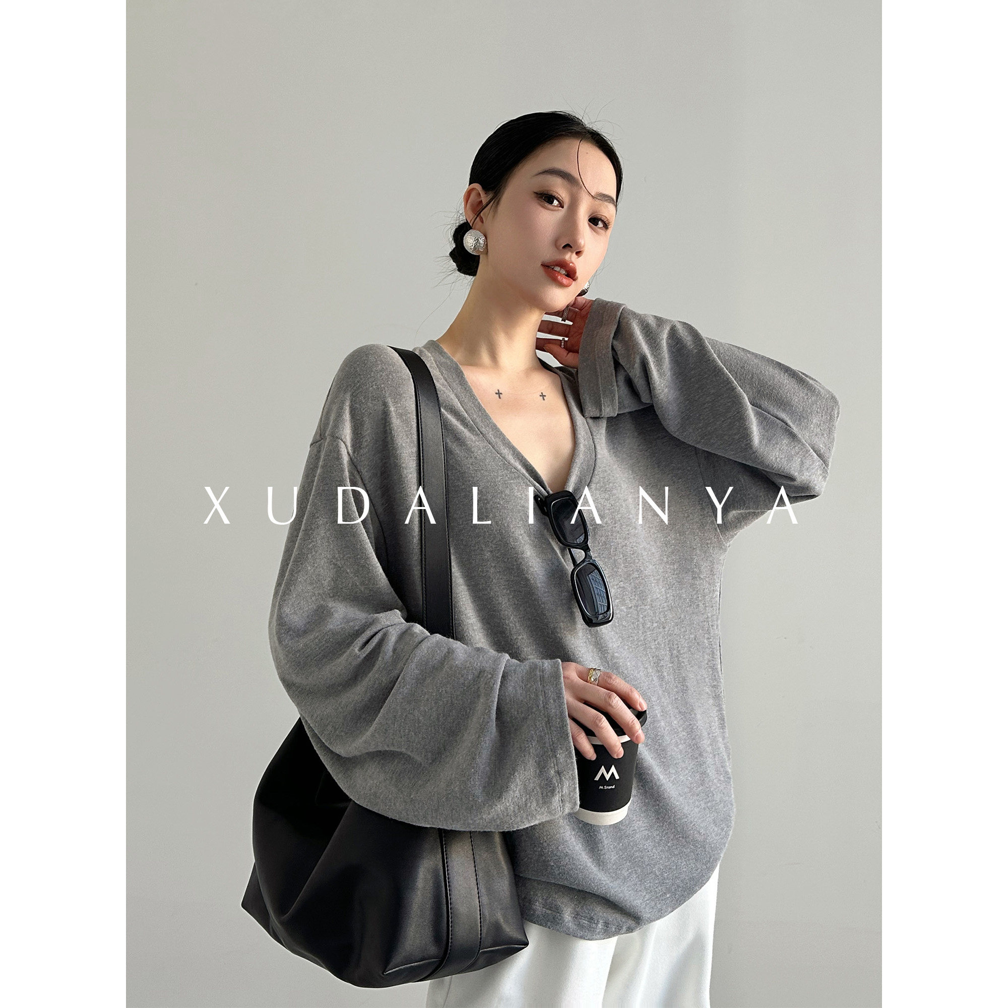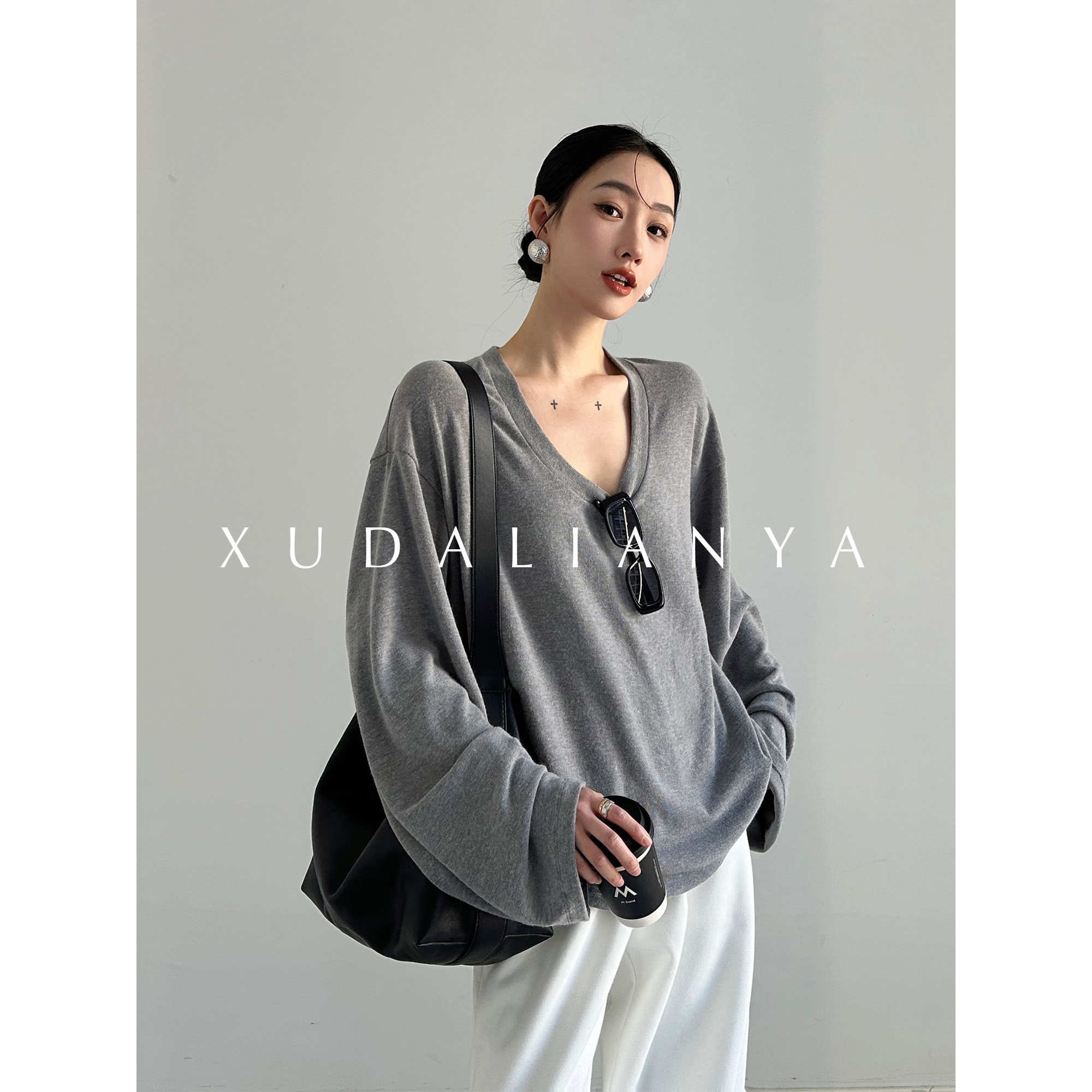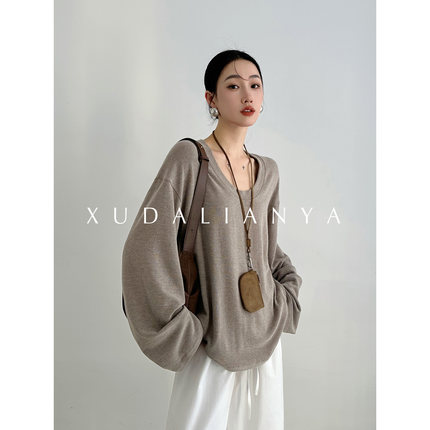 徐大脸吖定制 舒适度up软糯垂感针织衫春松弛感V领长袖T恤上衣女