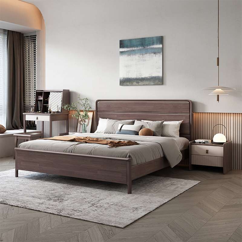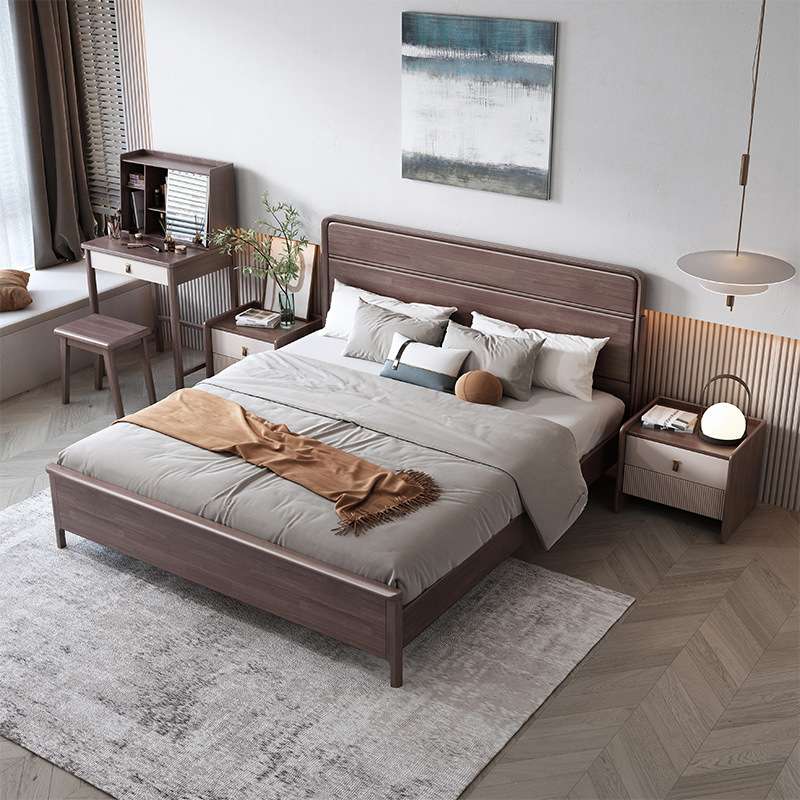 实木床现代简约1.8米双人床家用主卧1.5米北欧轻奢床高箱储物婚床