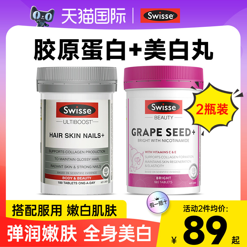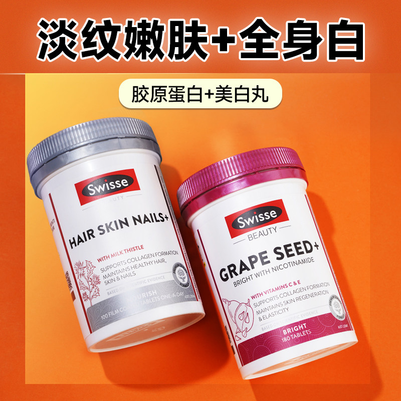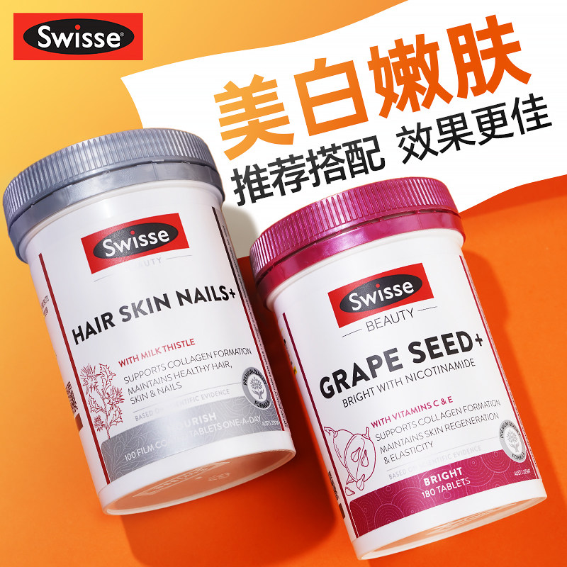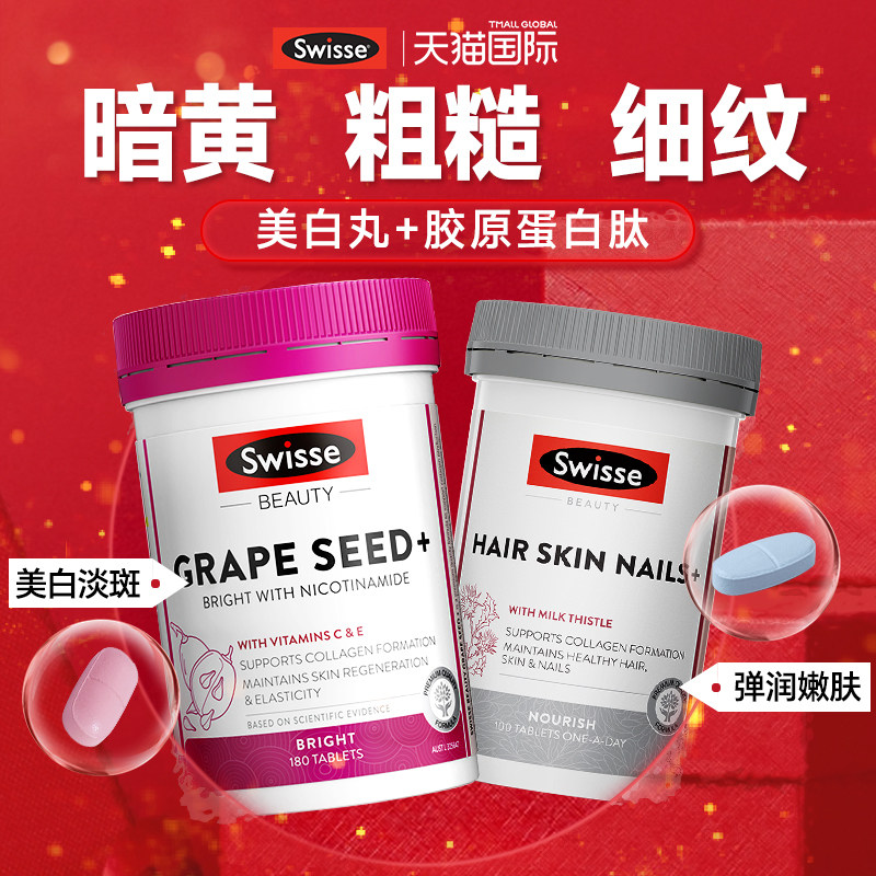 swisse胶原蛋白片葡萄籽美白丸内调全身白抗皱衰紧致老旗舰店正品