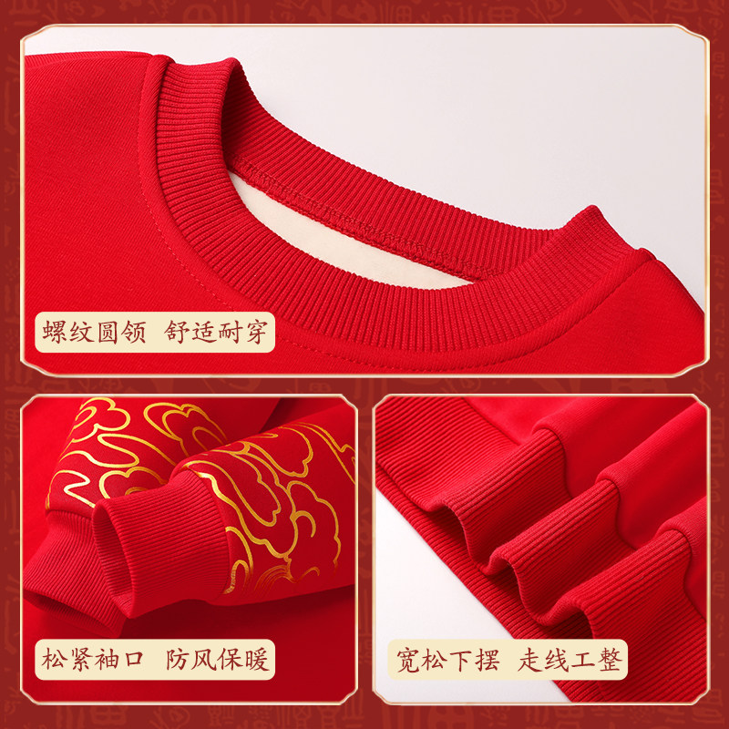 史努比儿童红色卫衣套装秋冬季2026马年本命年衣服男童加绒拜年服