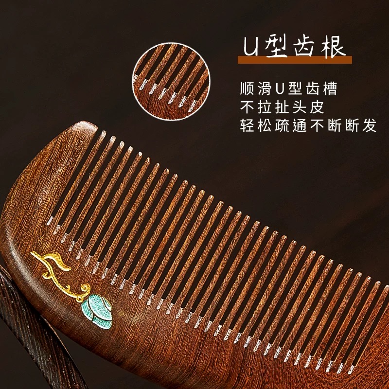 天然梳子黑金檀木按摩家用木梳子防脱发结婚礼盒女士专用老师礼物