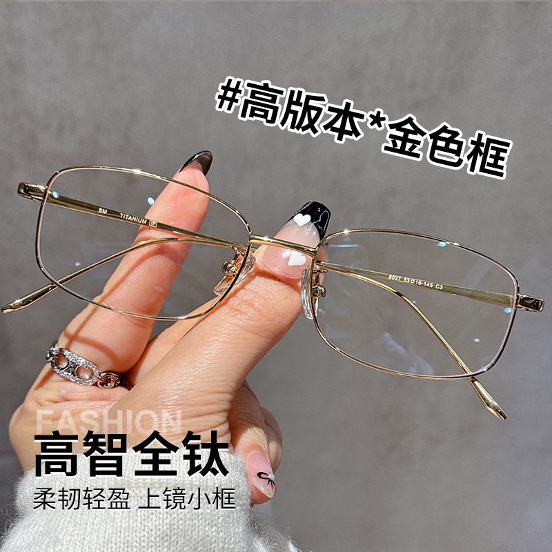 超轻纯钛小框眼镜女款近视可配度数素颜适合小脸的眼睛架银色方框