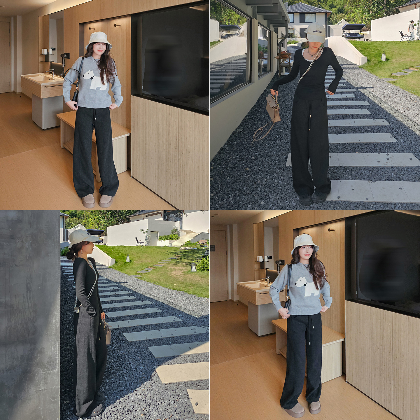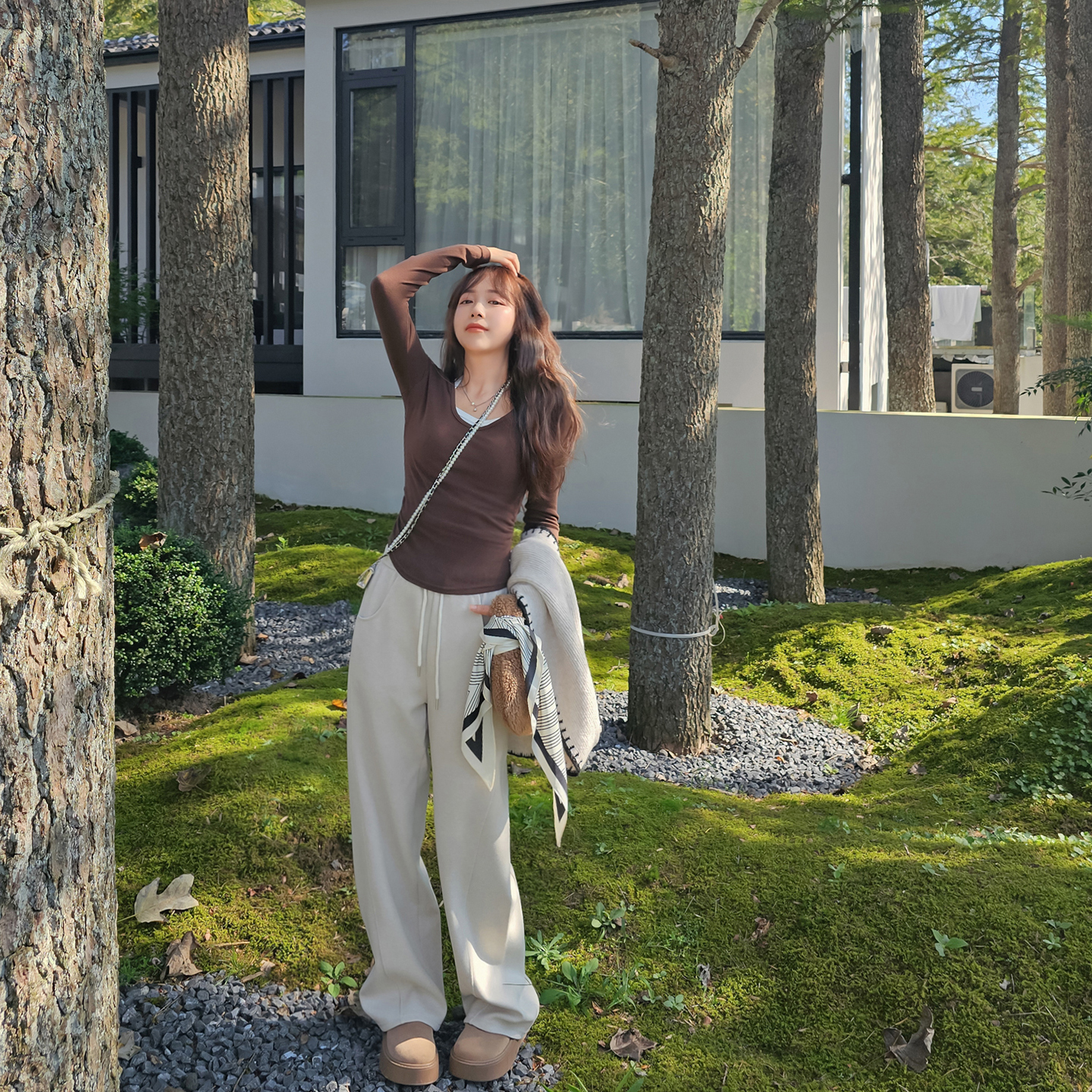 小个子秋冬新款仿羊绒糯米裤垂感高腰侧缝前移拖地直筒休闲裤子女