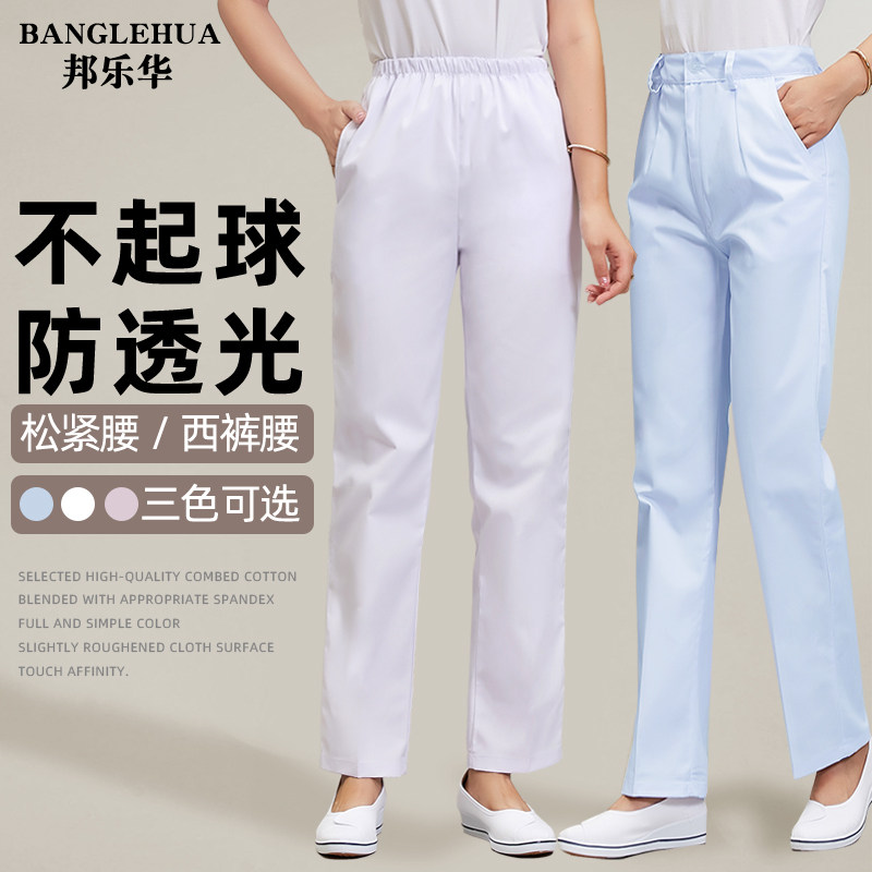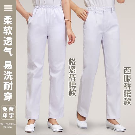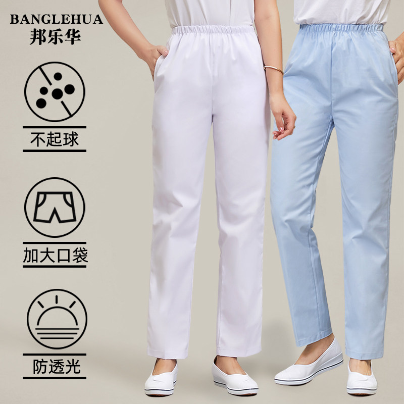 护士裤女白色蓝色医生裤子春秋松紧带大码护士服小个子粉色工作裤