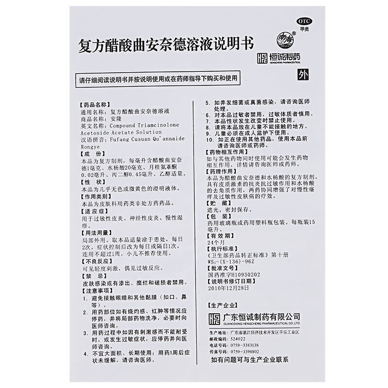 【恒诚制药】复方醋酸曲安奈德溶液15ml*1瓶/盒