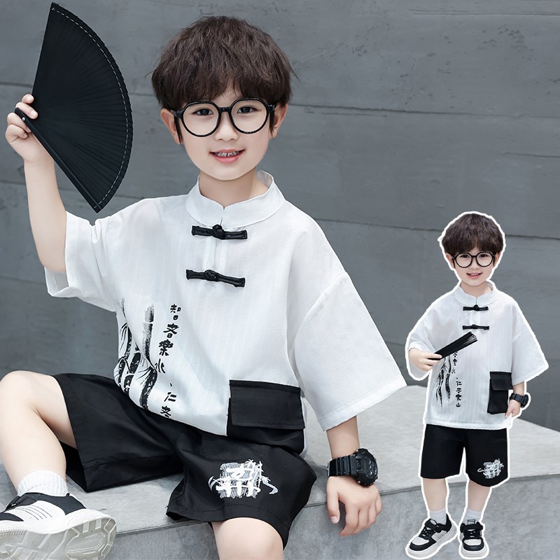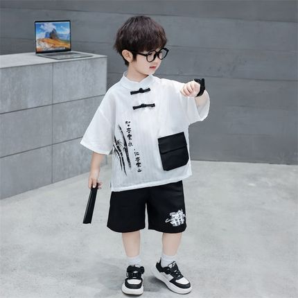 儿童汉服男童夏季中国风宝宝唐装薄款男孩古装套装高端中式国学服