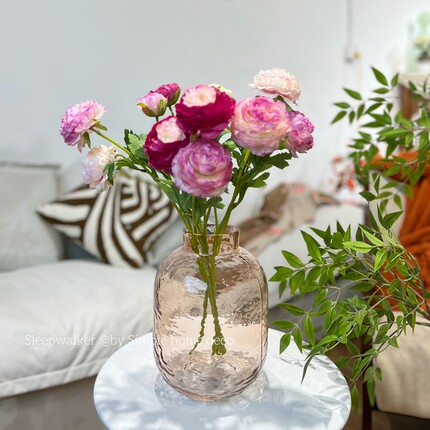 水红旋律|玻璃花瓶摆件侘寂风小众透明玻璃马醉木餐桌玄关装饰