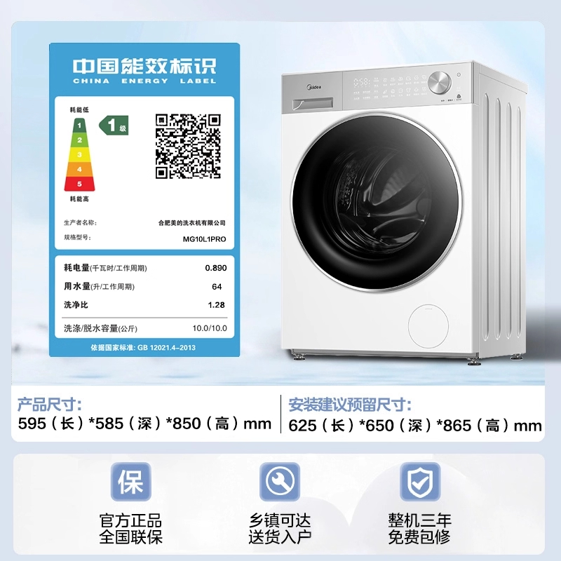 以旧换新补贴美的10kg洗衣机家用全自动纯平嵌滚筒洗烘脱一体L1