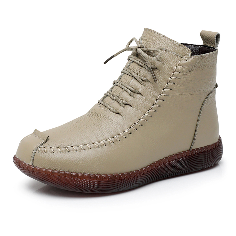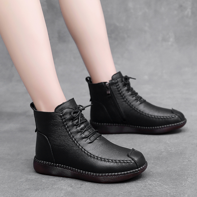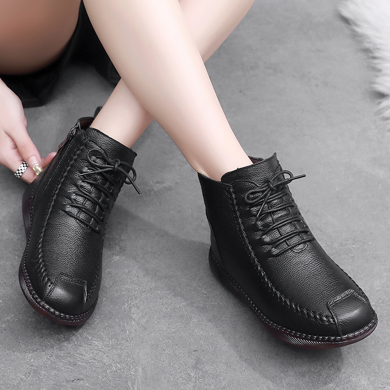 他她女孩新款妈妈靴子马丁靴冬季加绒皮鞋女真皮软短靴显瘦中平底