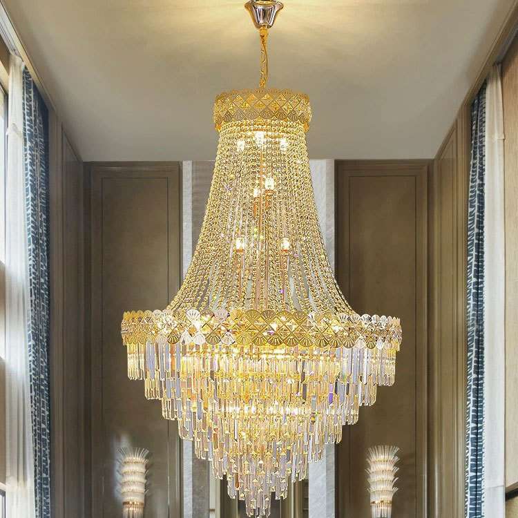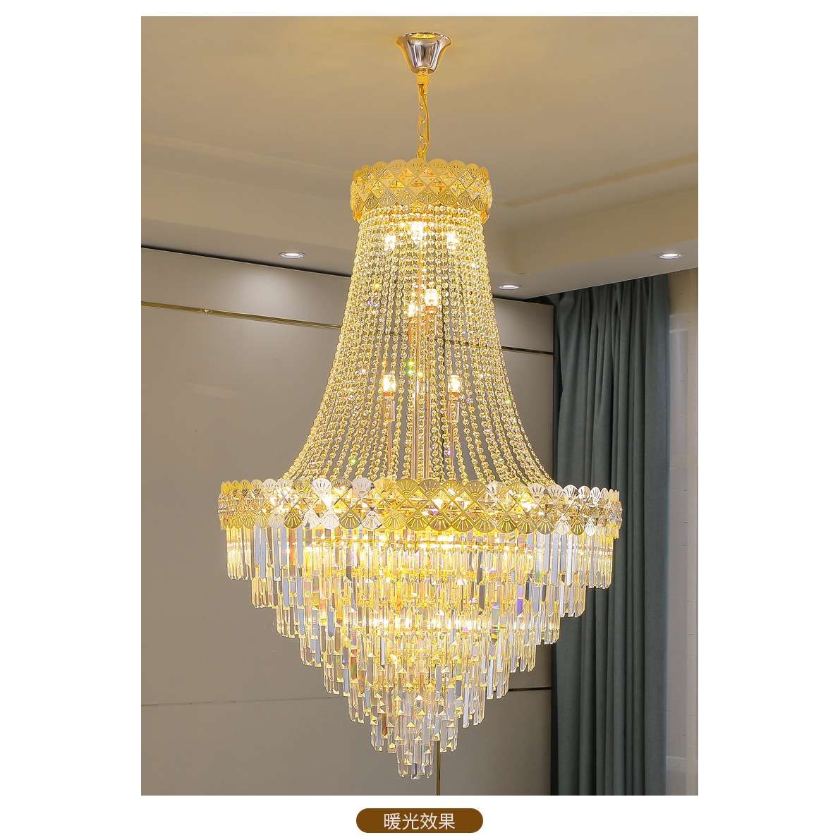 复式楼大吊灯别墅客厅中空简约楼中楼跃层轻奢长水晶旋转楼梯吊灯