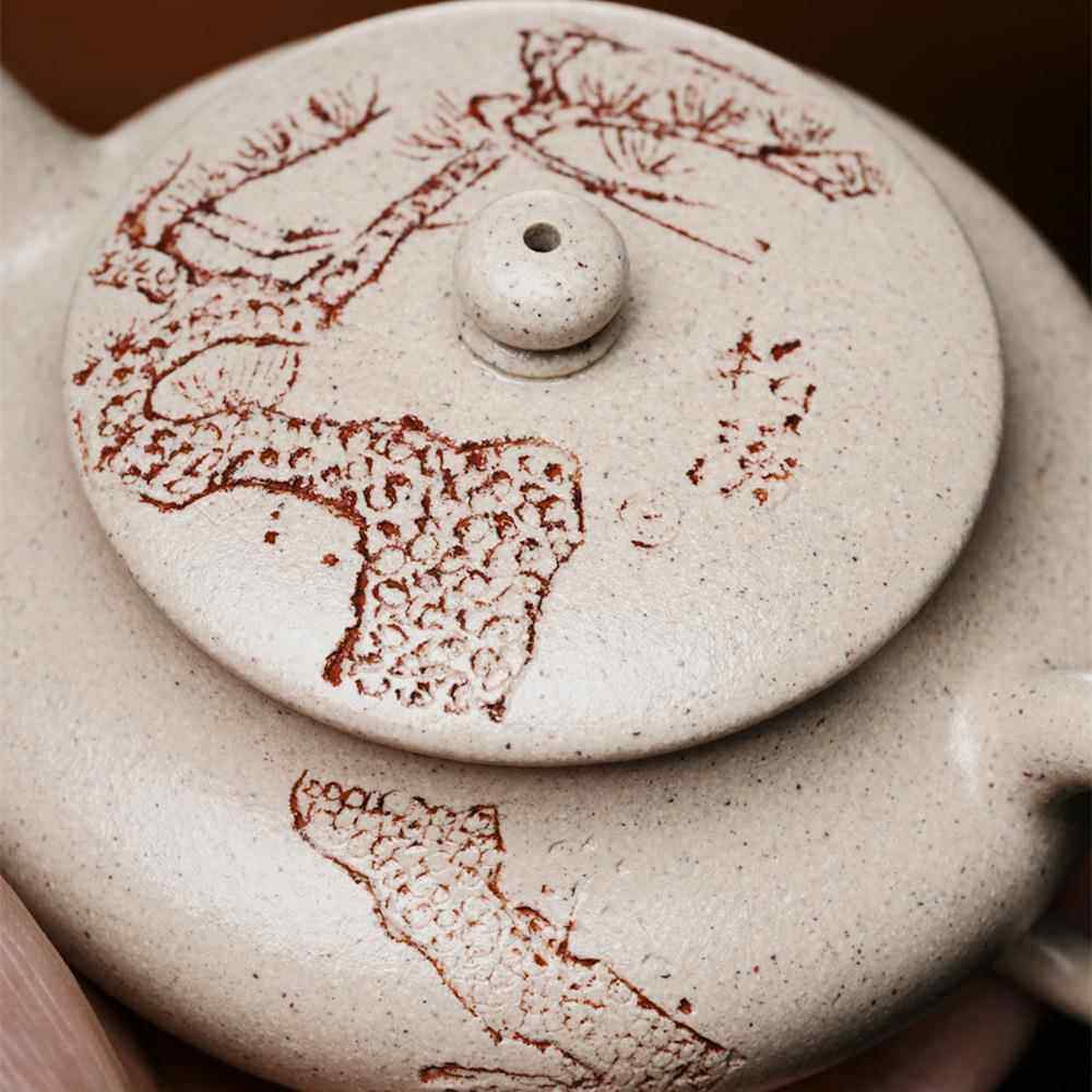 松树腹扁壶宜兴手工紫砂芝家麻白段泥茶具EQM直用泡茶壶壶播