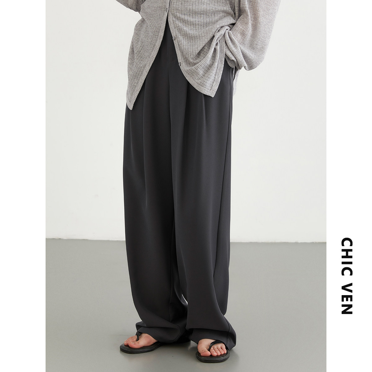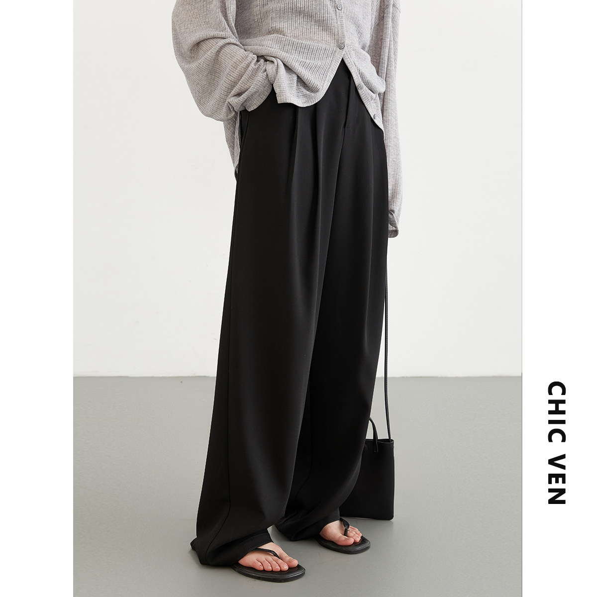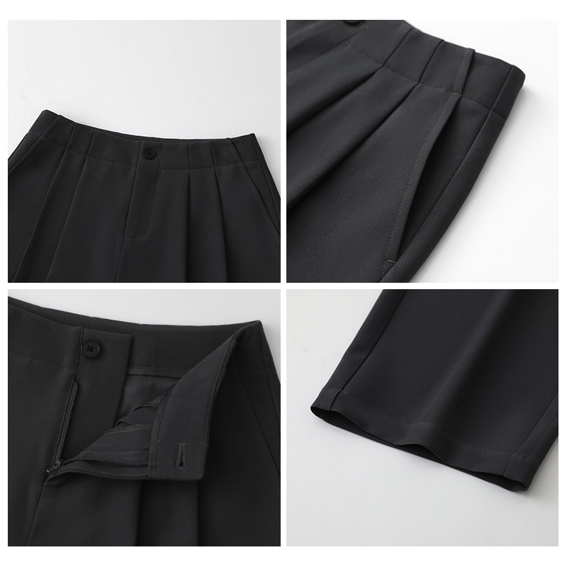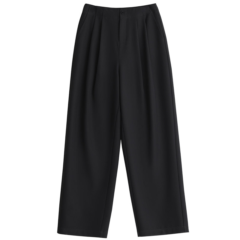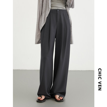 CV大码女装 春夏新款休闲高腰压褶拖地西装裤垂感阔腿长裤女胖MM
