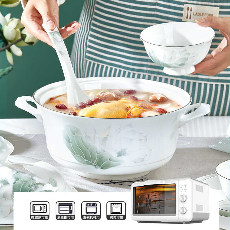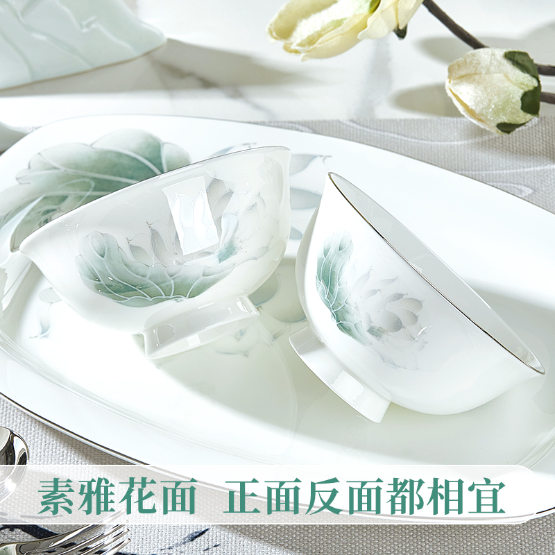陶瓷碗家用饭碗2025新款轻奢好看的银边骨瓷餐具碗碟套装碗盘组合