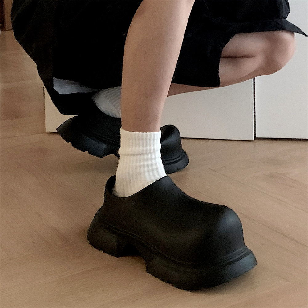 马丁靴男女春秋百搭时尚高级感半包拖增高厚底一脚蹬情侣大头鞋子