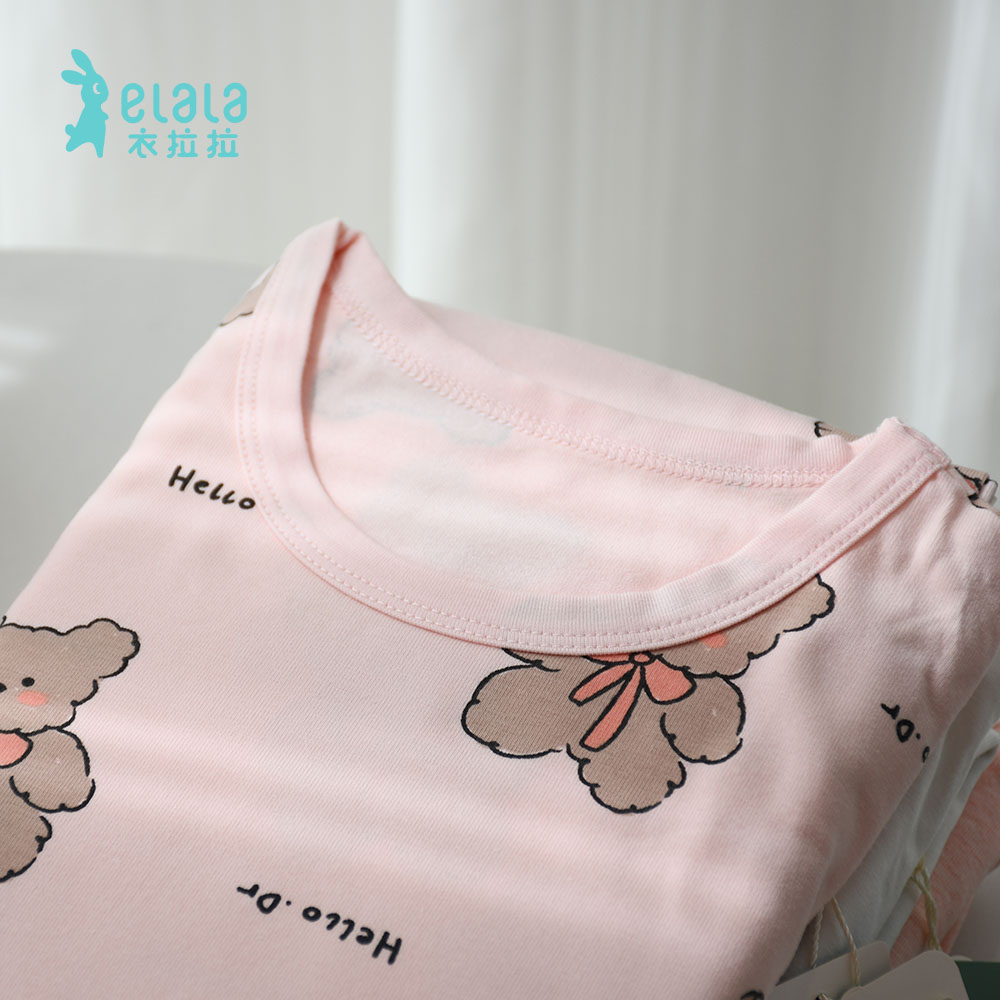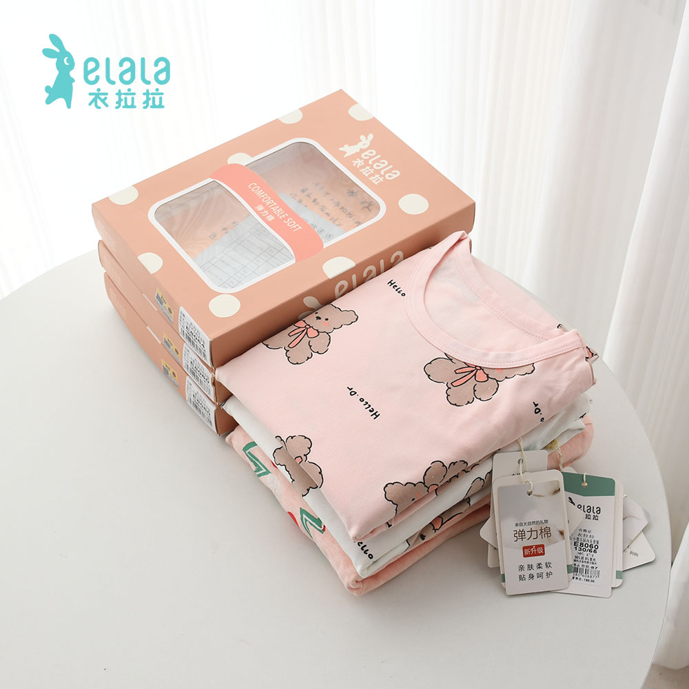 薄款弹力棉~衣拉拉春秋女童内衣套装莱卡秋衣秋裤家居服