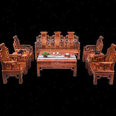 红木家具花梨木卷书沙发组合刺猬紫檀实木客厅明清沙发椅家用整装