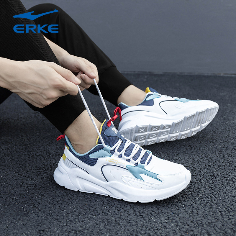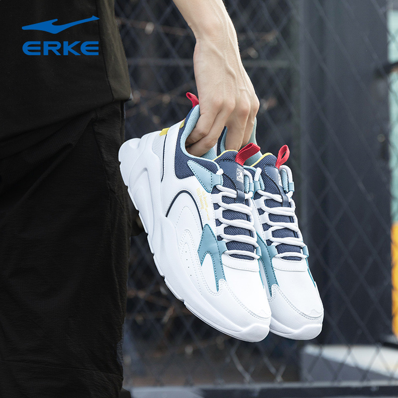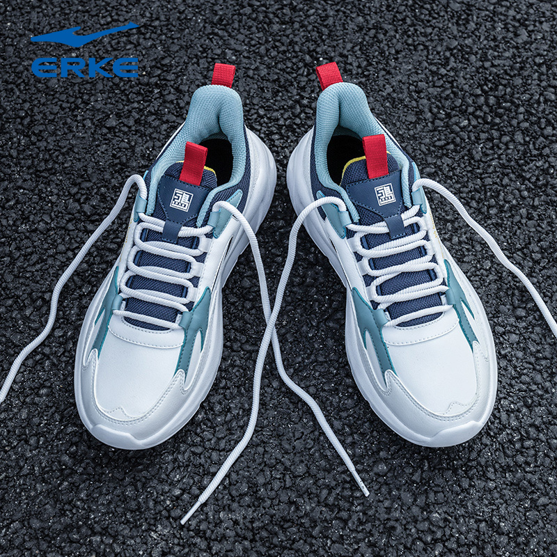 鸿星尔克男鞋跑步鞋秋季青少年官方旗舰皮面老爹鞋男士休闲运动鞋