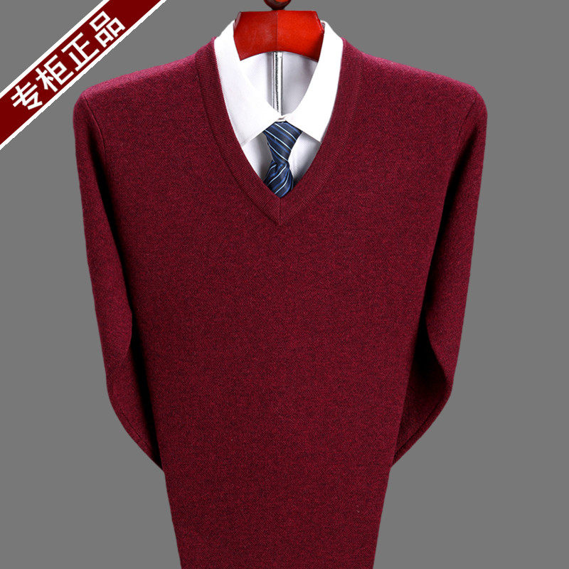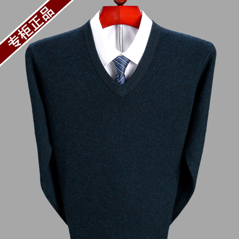 鄂尔多斯市羊绒衫男士V领加厚中老年鸡心领羊毛衫宽松半高领毛衣
