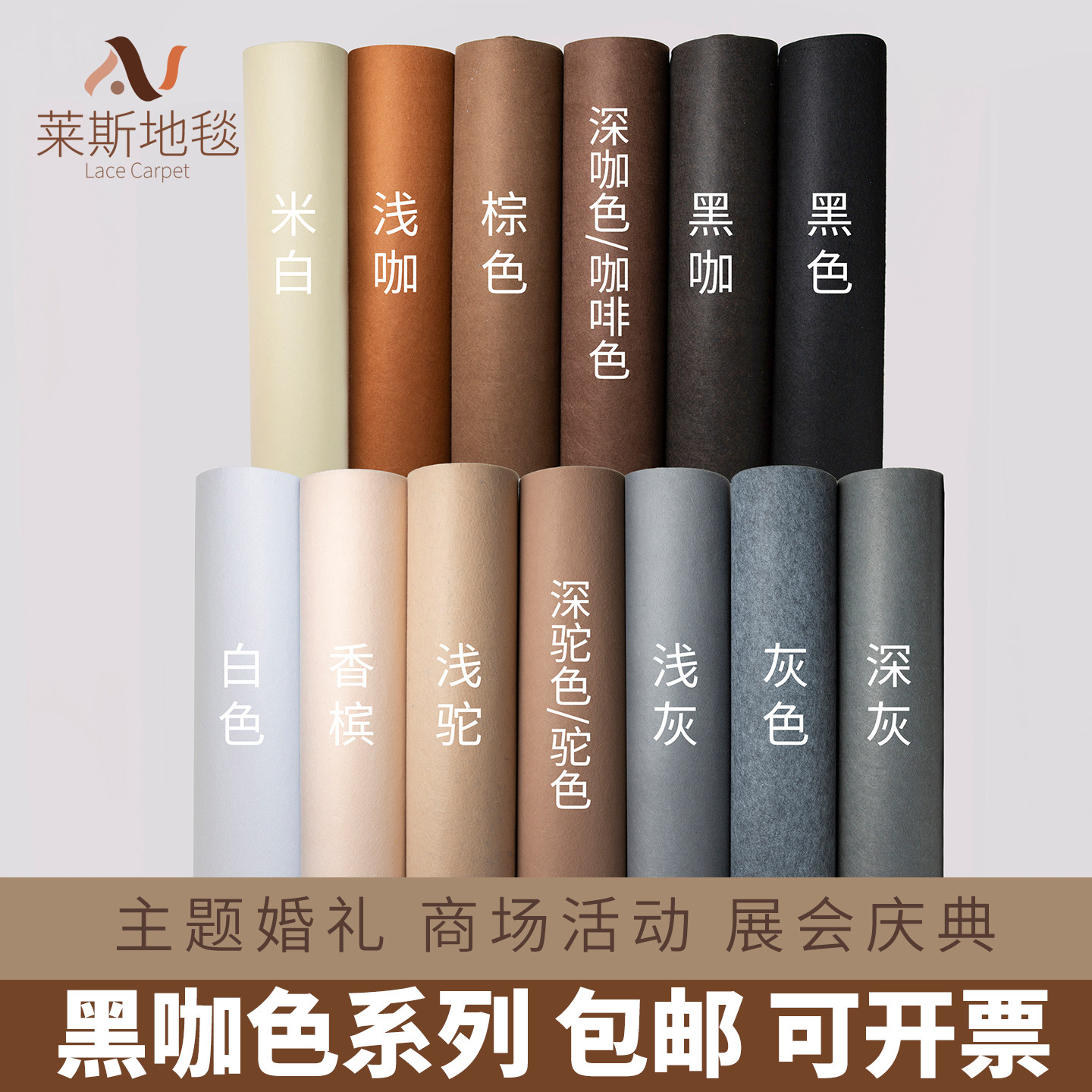 结婚庆典舞台酒红桔黄粉深宝蓝白紫灰黑咖驼色墨绿玫红一次性地毯
