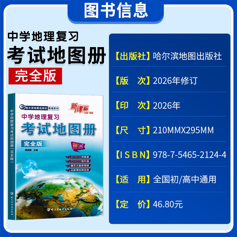 2026新版新课标中学地理复习考试地图册完全版哈三中地理图册新教材新高中高一二三地理高考成人考试复习辅导资料哈尔滨地图出版社