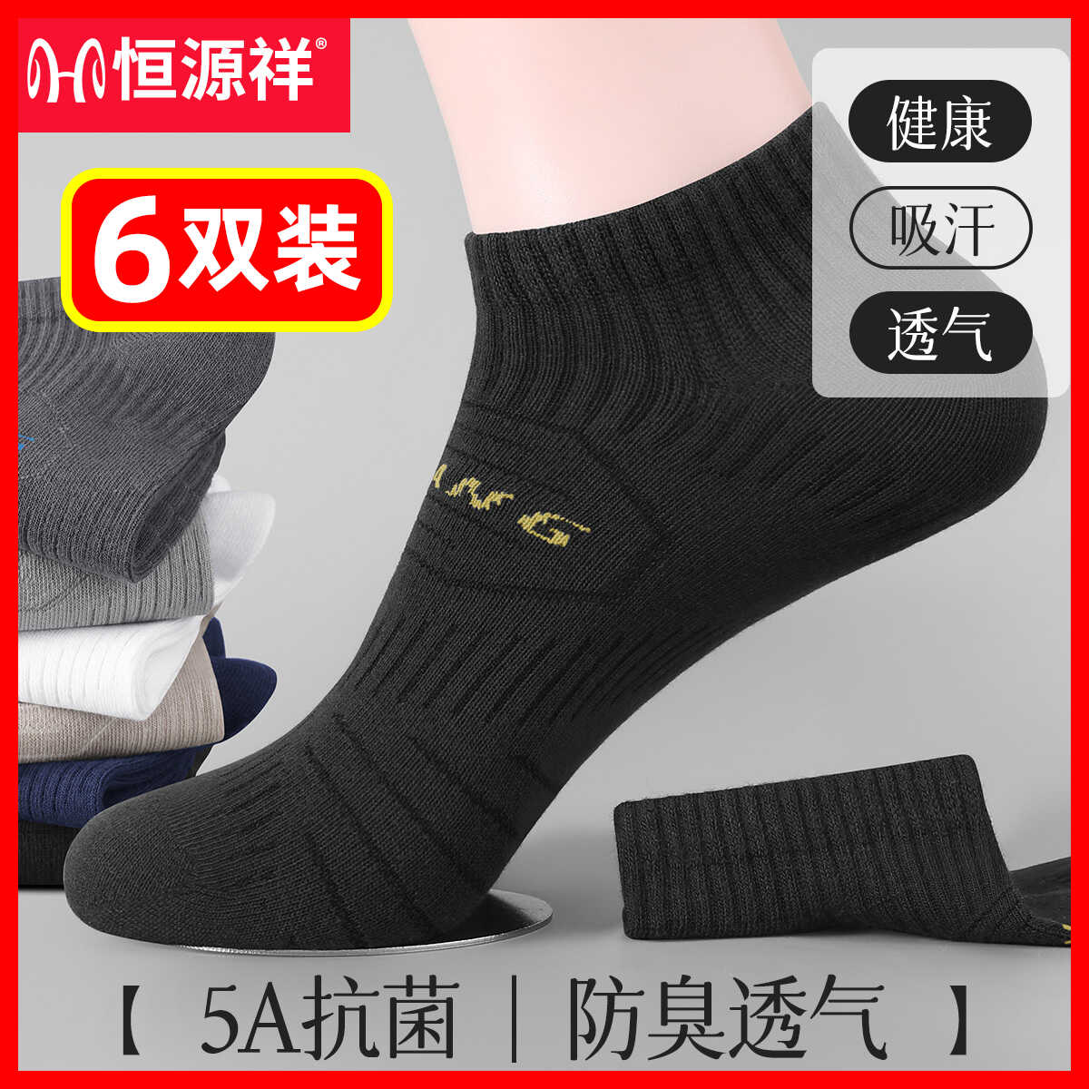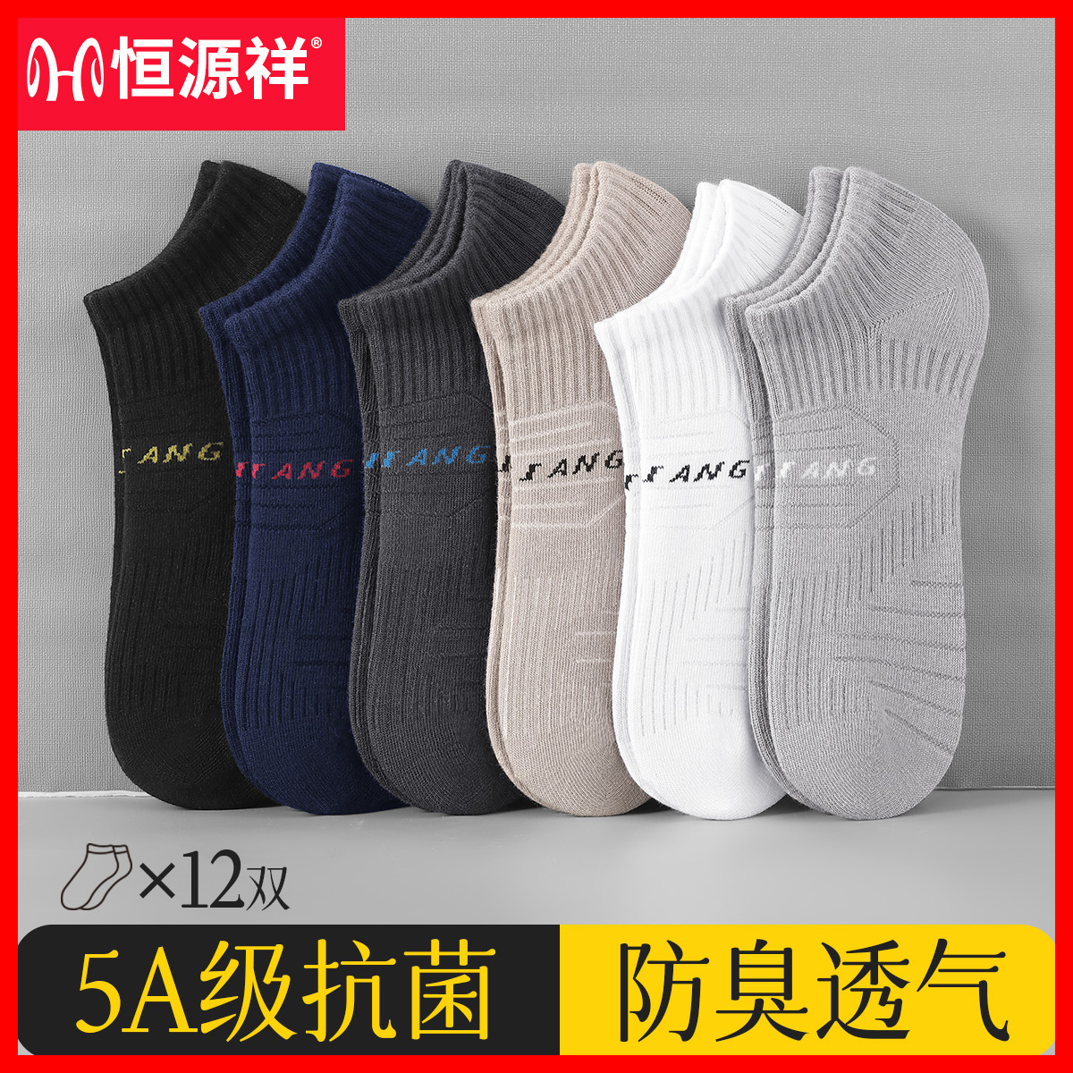 恒源祥男士短袜纯棉抗菌夏季男袜