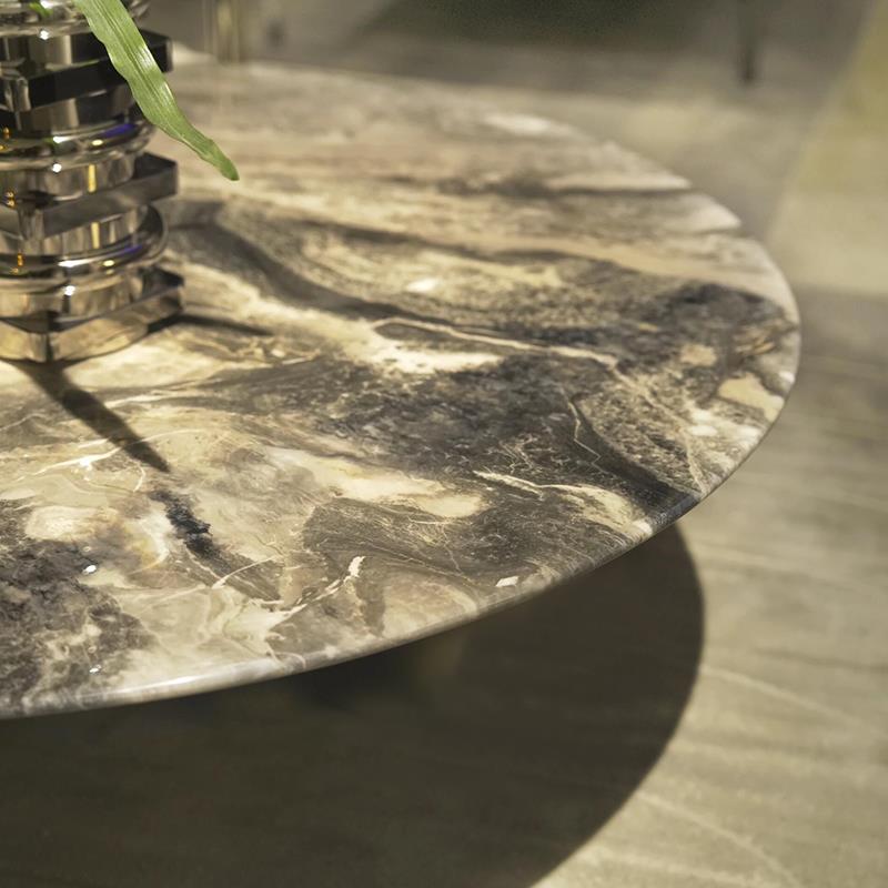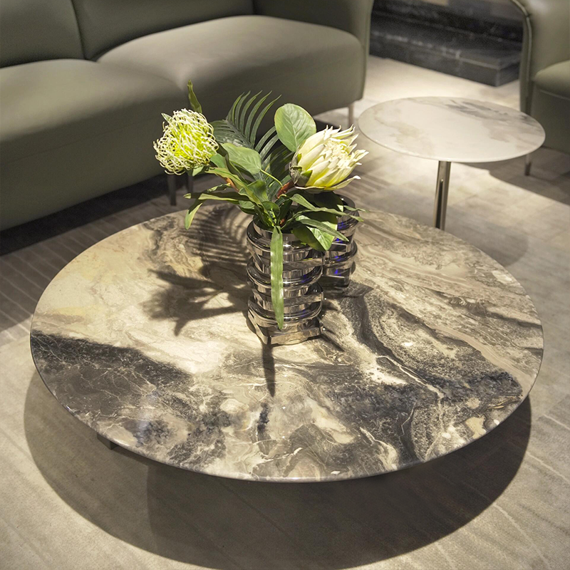 爱依瑞斯2025新款威尼斯棕仿奢石客厅圆形茶几大理石悬浮设计轻奢