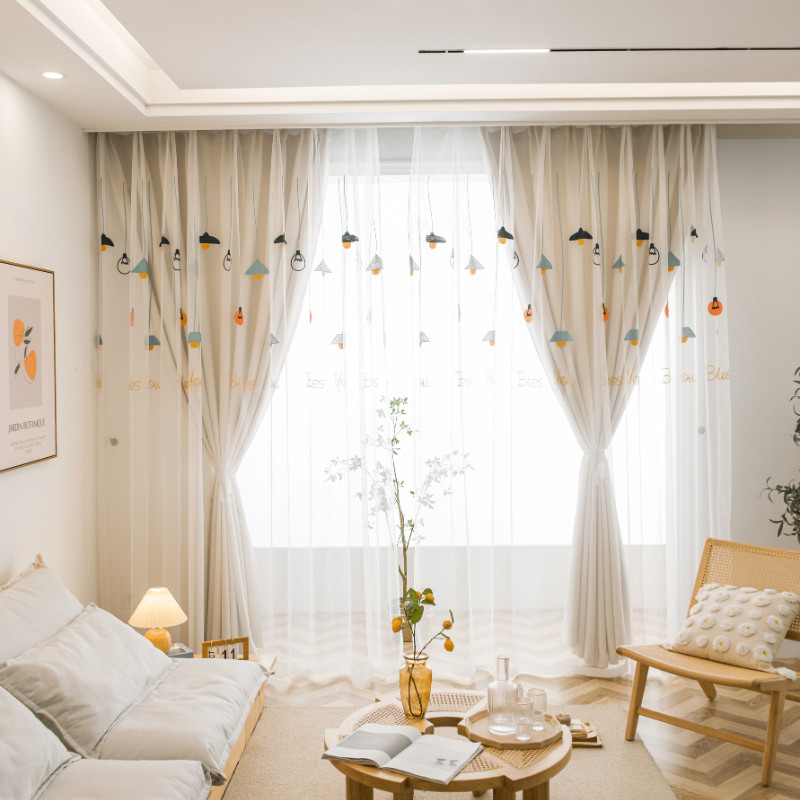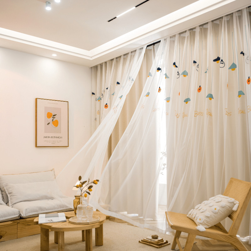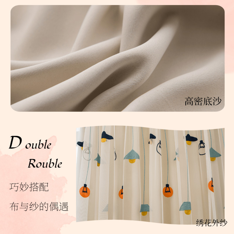 2023新款卧室遮光窗帘布纱一体现代简约双层绣花客厅阳台轻奢蕾丝