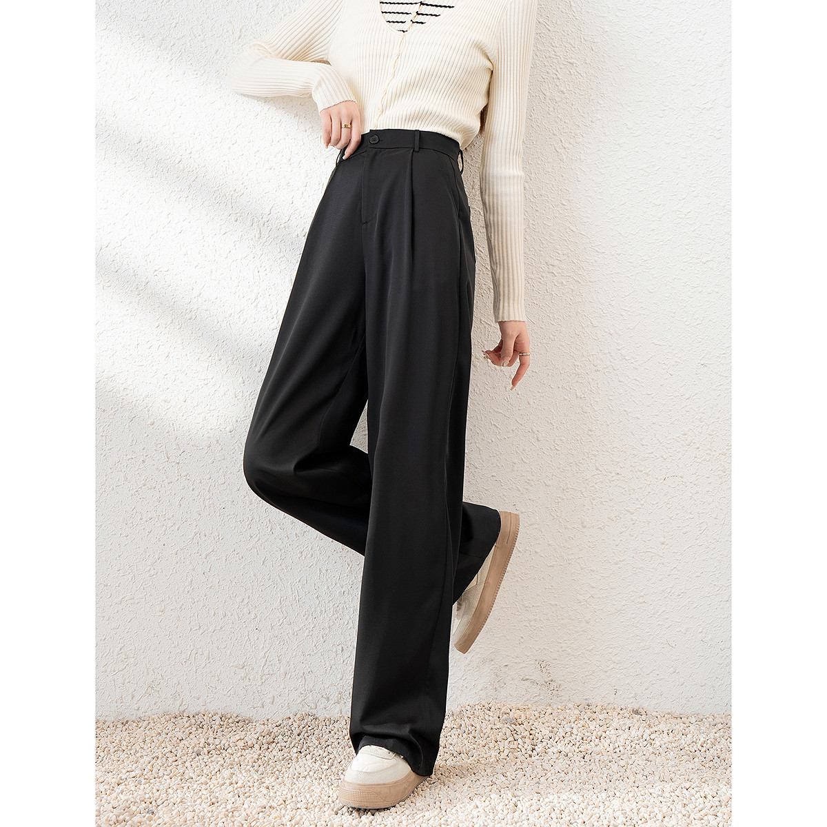 唐狮女装宽松百搭高腰休闲阔腿裤