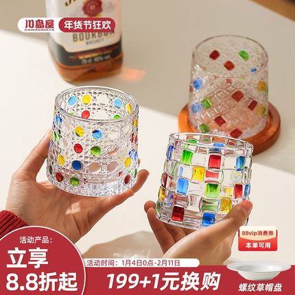 川岛屋威士忌酒杯高级感洋酒杯家用旋转不倒翁玻璃啤酒杯子高颜值