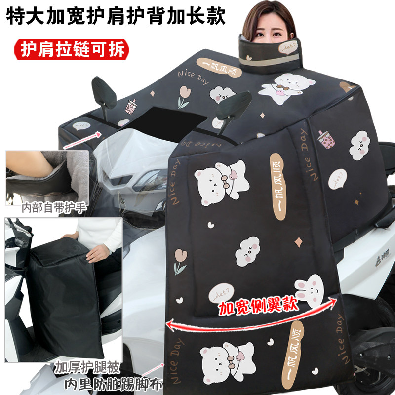 斗篷式电动摩托车挡风被冬季加大加厚踏板挡风被防水防风保暖通用