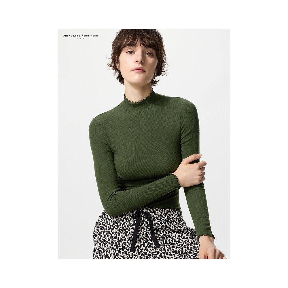 日本直邮Uniqlo Uniqlo 极暖Heattech羊绒混纺罗纹高领T恤 480581