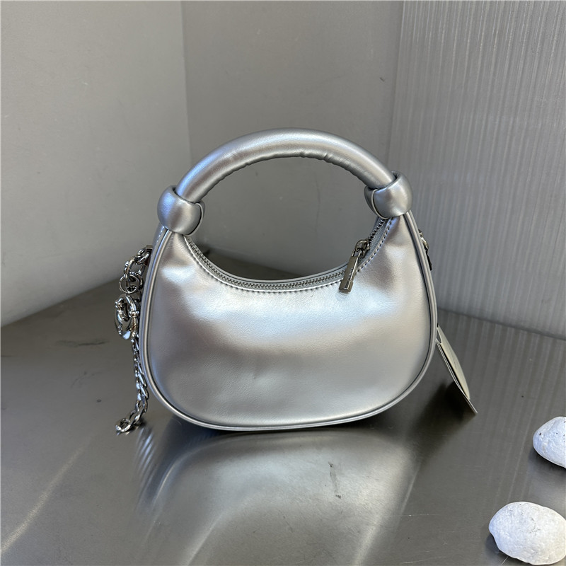 可彼娜上新小众复古月牙包油蜡皮链条单肩斜挎手拎包包复古腋下包