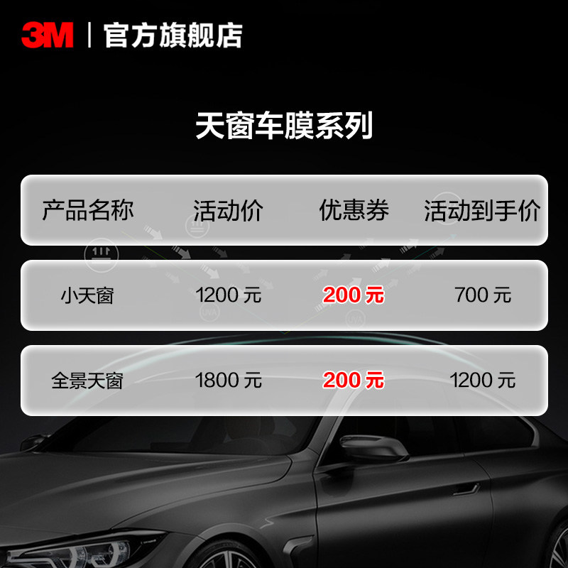 3m天窗膜新能源汽车贴膜防紫外线隔热膜全景天窗隔热膜防爆