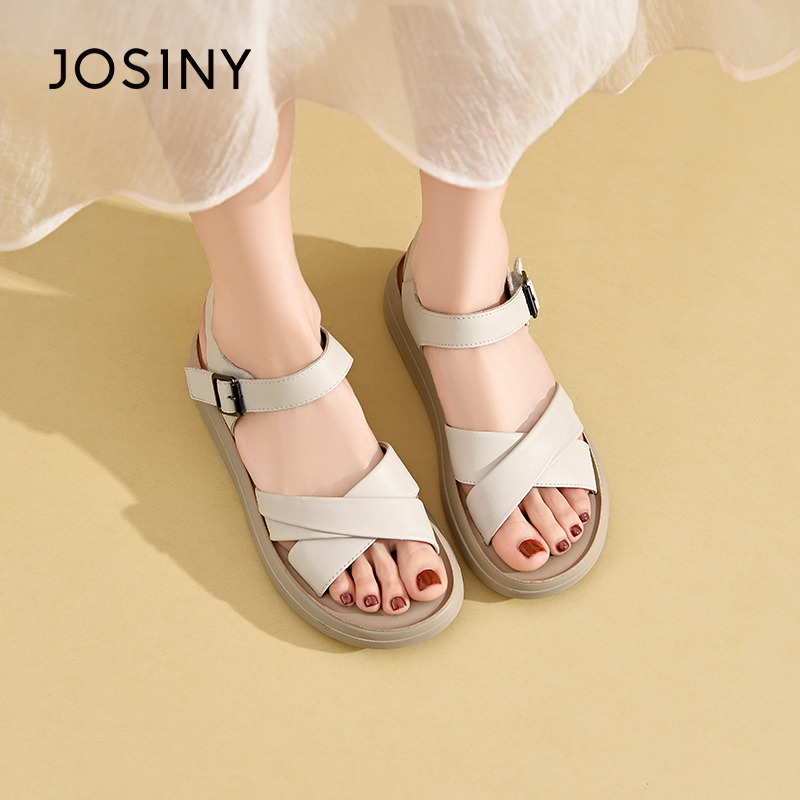 卓诗尼2025新款夏季圆头休闲凉鞋