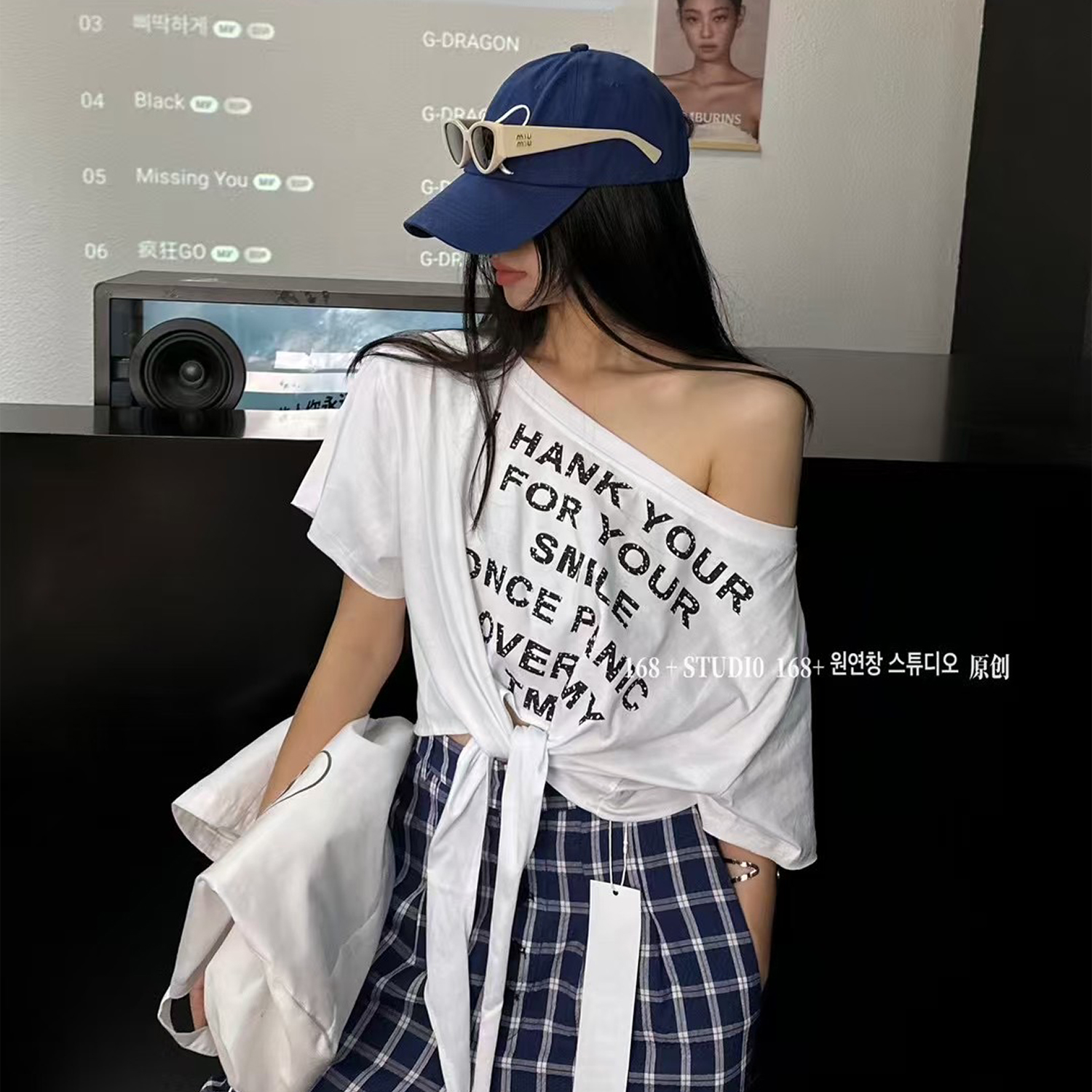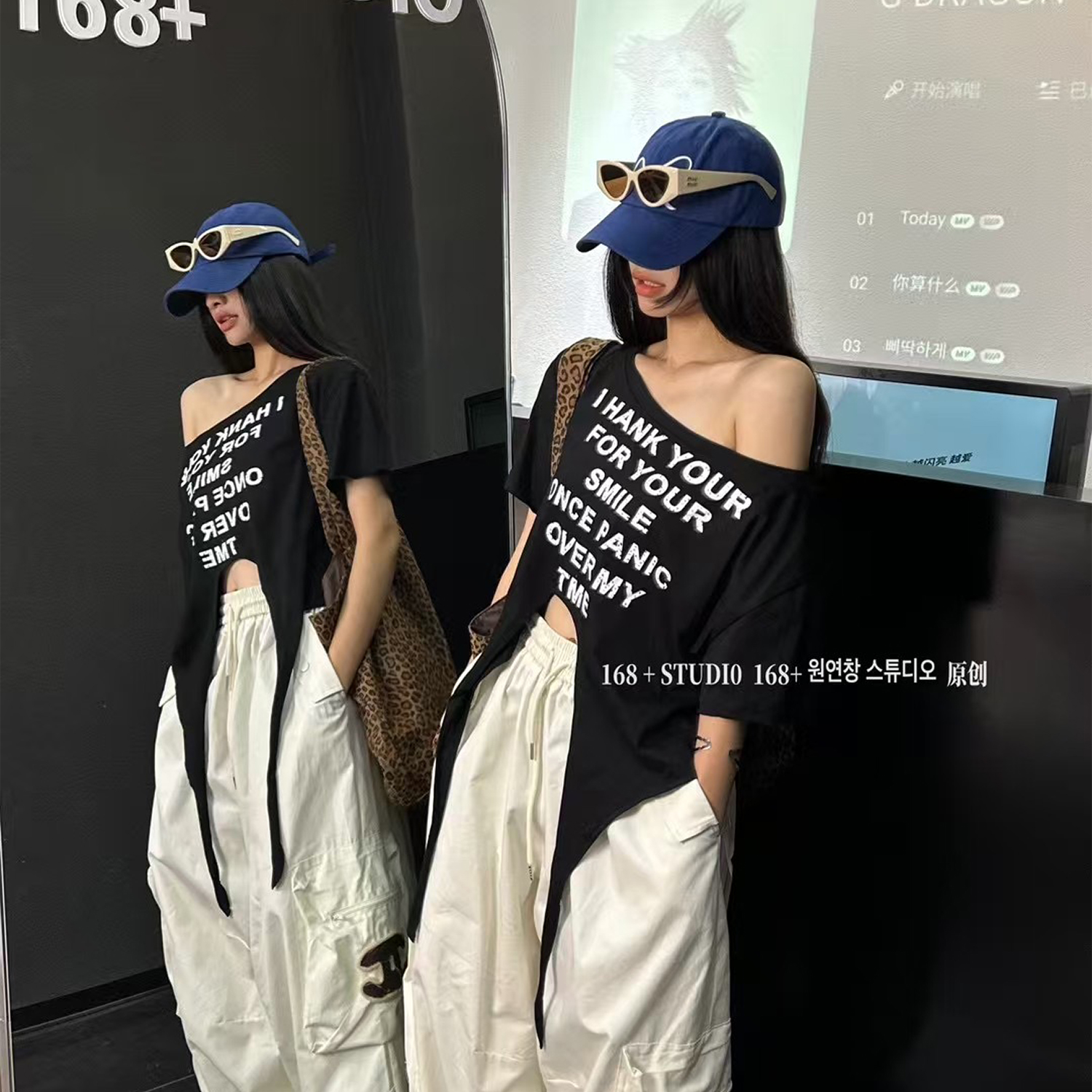 一字肩短款短袖t恤女宽松薄款2025夏季爆款上衣ins潮中长款遮屁股