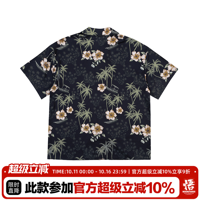 悟空有货夏威夷椰树印花上衣短袖衬衫男夏季潮牌宽松情侣沙滩衬衣