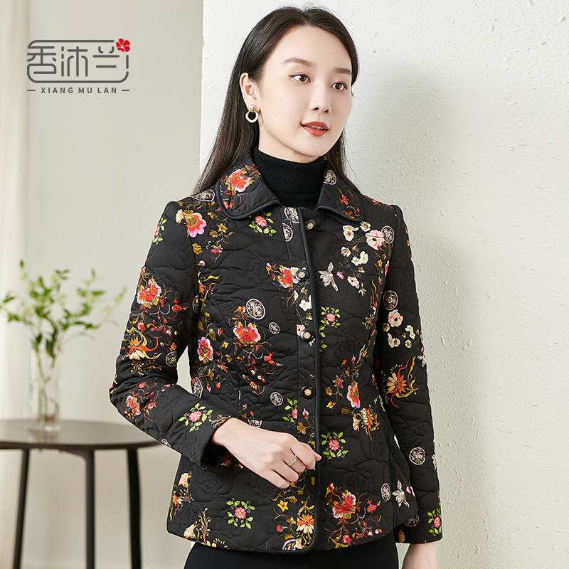 香沐兰中老年妈妈装2025秋冬时尚印花外套洋气棉服大码长袖上衣女