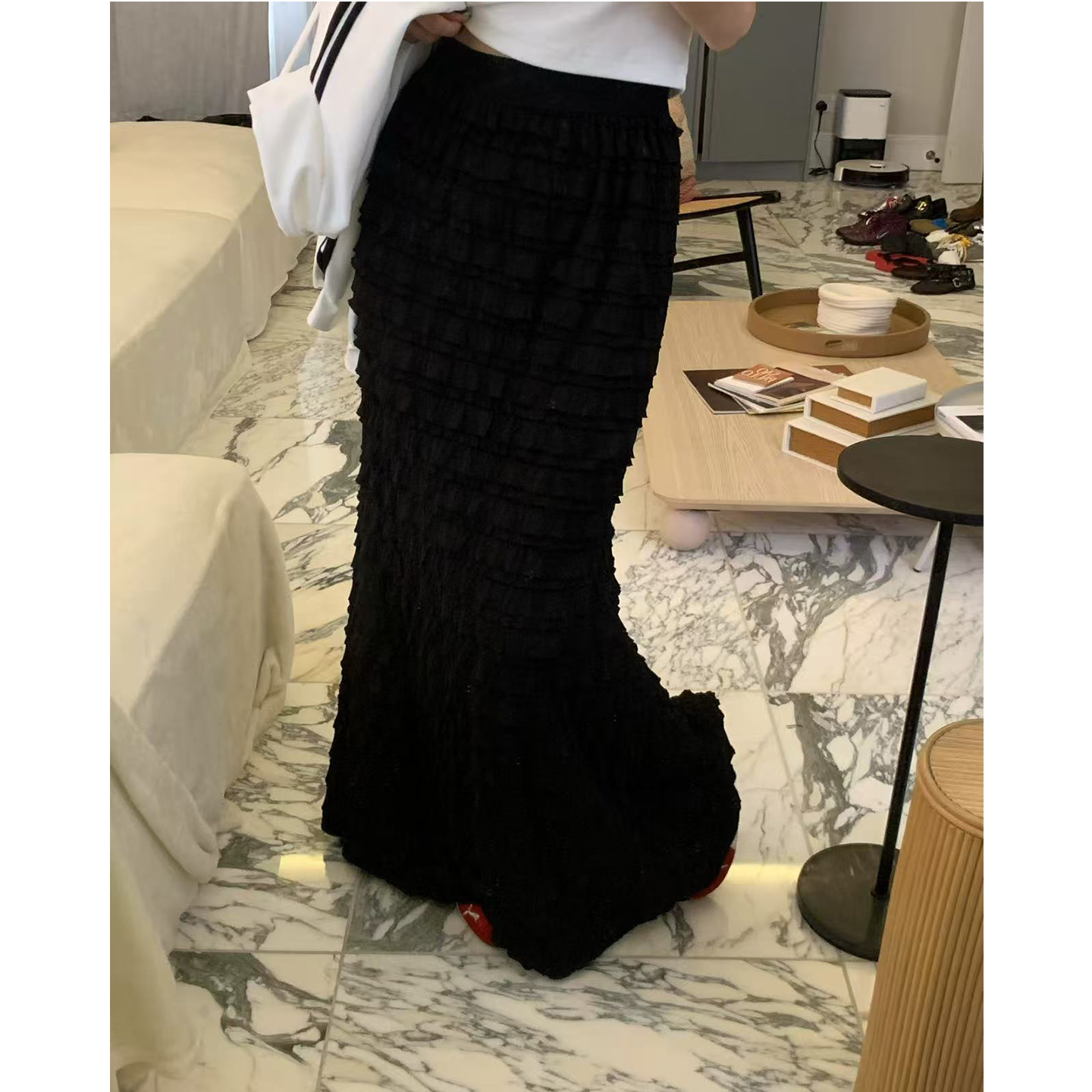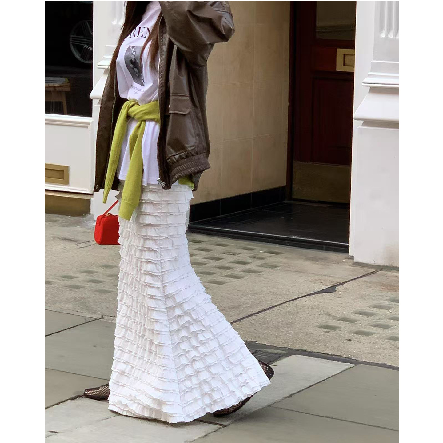 韩国东大门2025秋季新款木耳边拼接蛋糕半身裙纯色鱼尾长裙子女