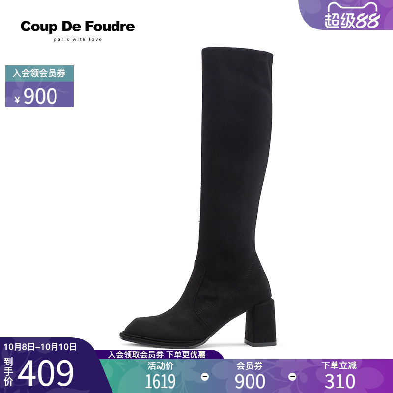 CDF女鞋秋冬季经典百搭过膝长靴弹力靴长筒靴高筒靴粗跟高跟靴