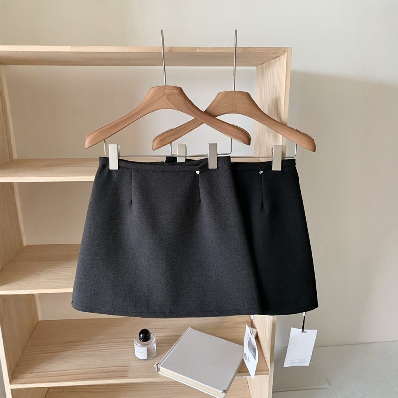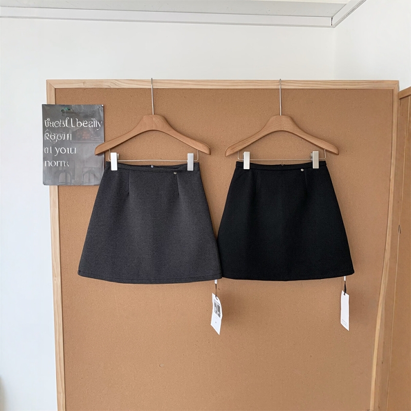 梨形身材深灰色加厚羊毛呢半身裙秋冬高腰A字气质黑色防走光短裙